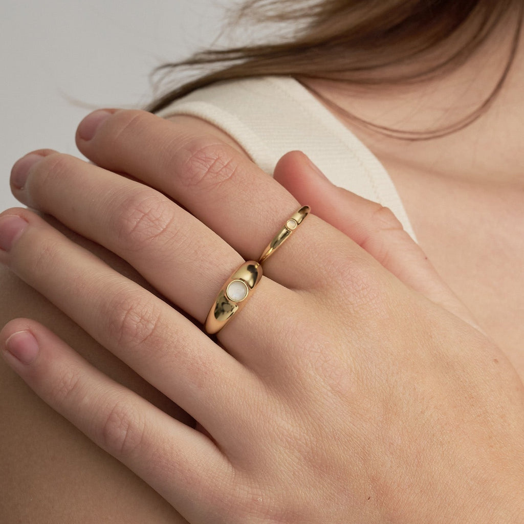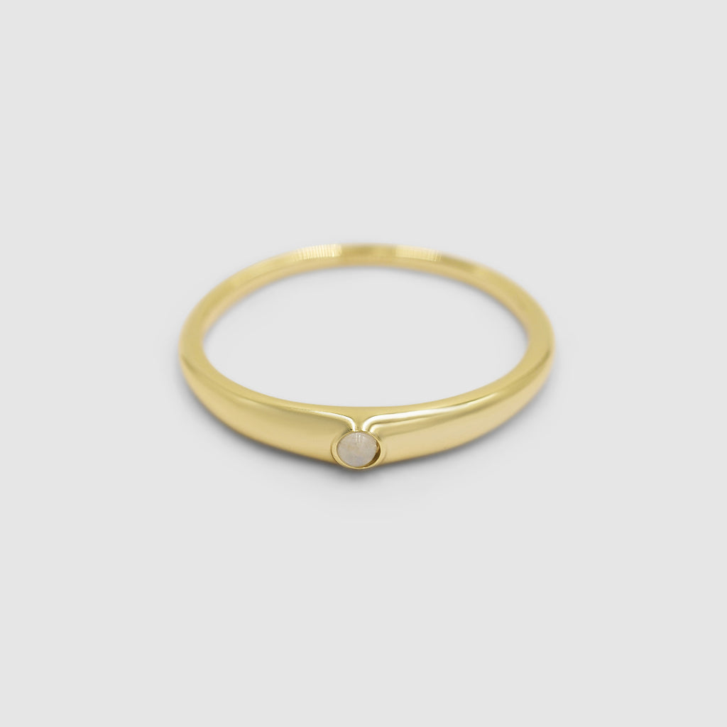 The Ada Slim Moonstone Ring by Australian-based accessory brand, Brie Leon is a vintage-style ring adorned with a stunning milky moonstone - a symbol of fresh starts. Inspired by nature, the range captures the serene beauty of sun-soaked summers through carefully curated hues and textures.