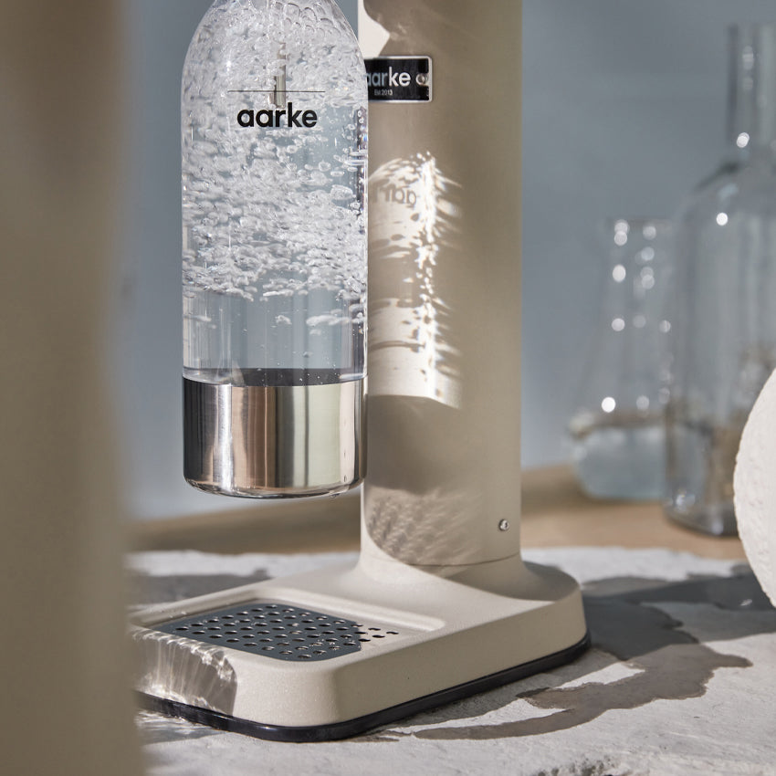 A minimalist sparkling water maker featuring a compact design and classic finishes. The Aarke Carbonator 3 in Sand is designed from the inside out to be the slimmest, most compact sparkling water maker. A perfect fit to suit your interiors, whether it's in the kitchen, at a celebration or in the workspace.