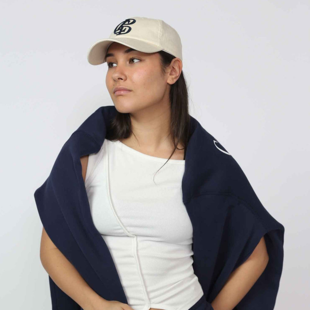 This CPD Logo Cap by Commonplace in natural white with contrasting navy embroidery is cut for a classic fit, the perfect finish for any outfit.