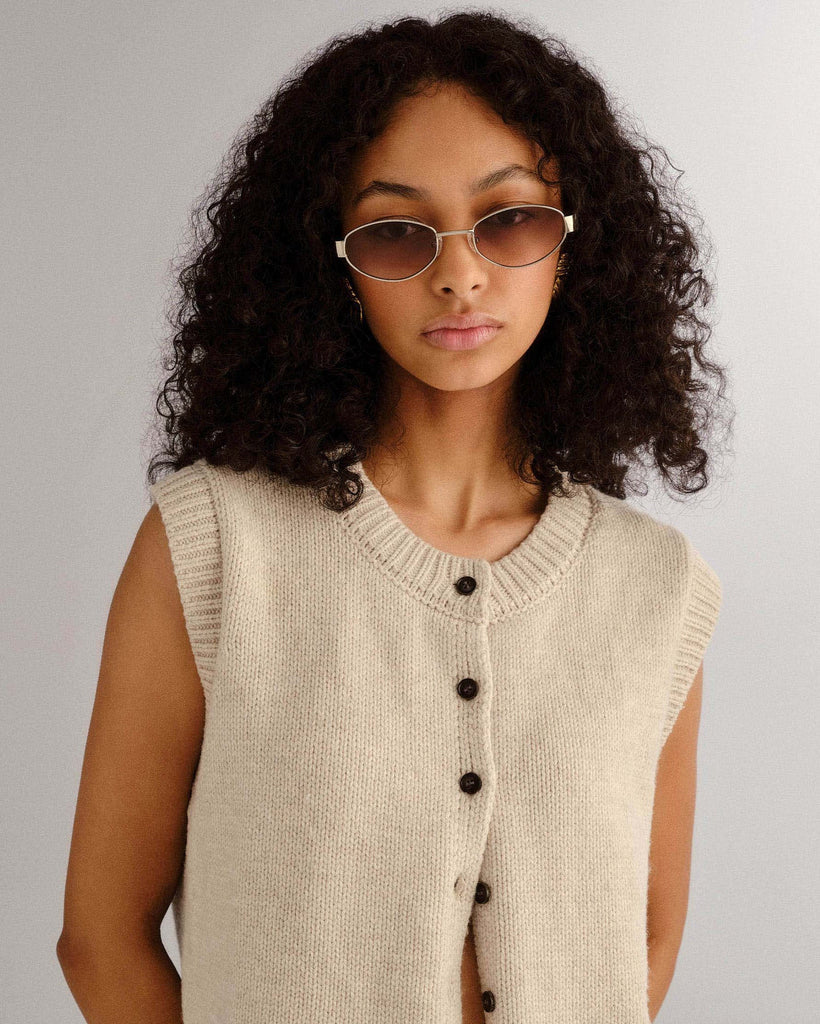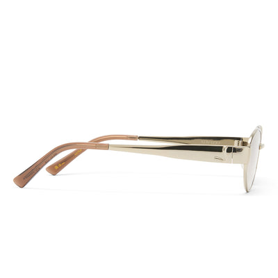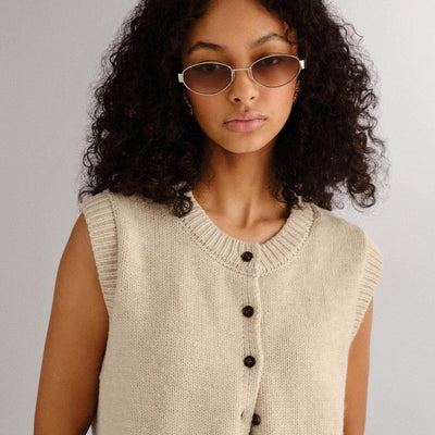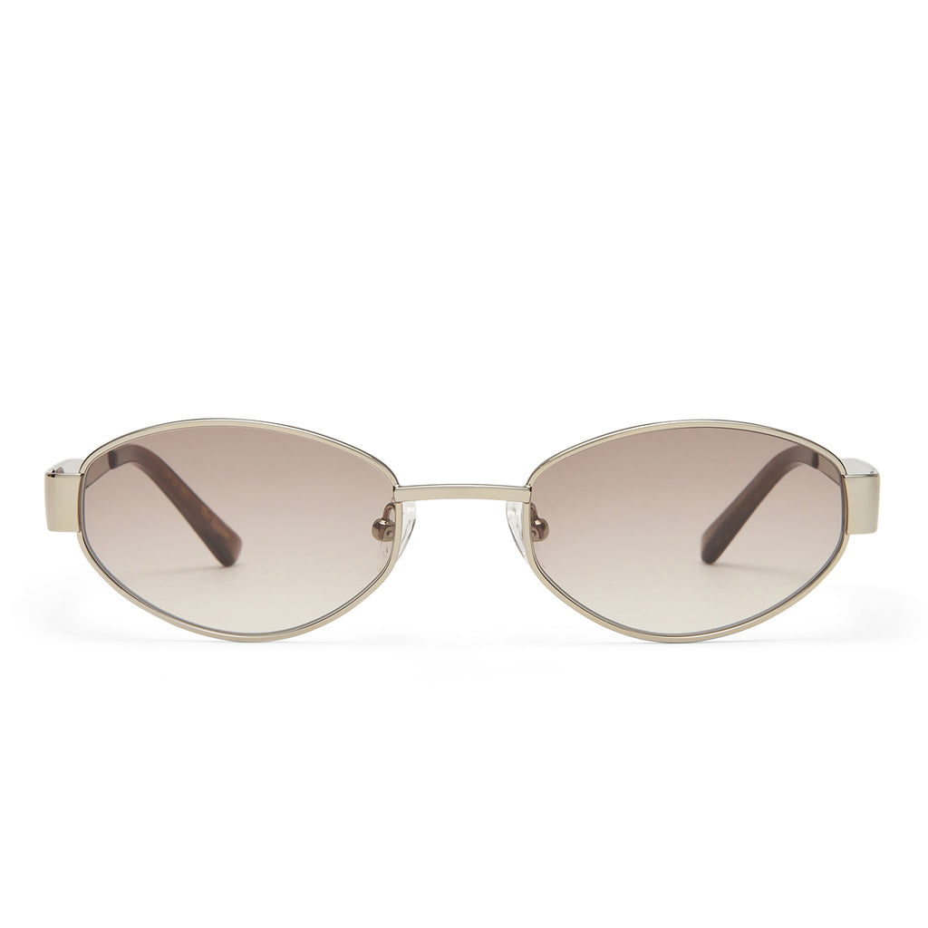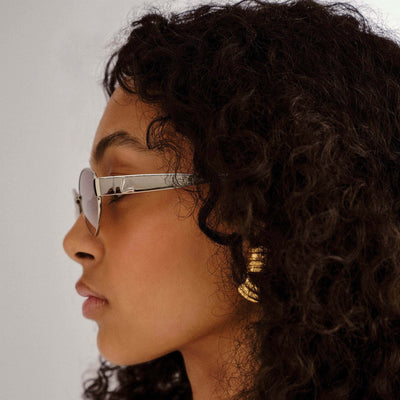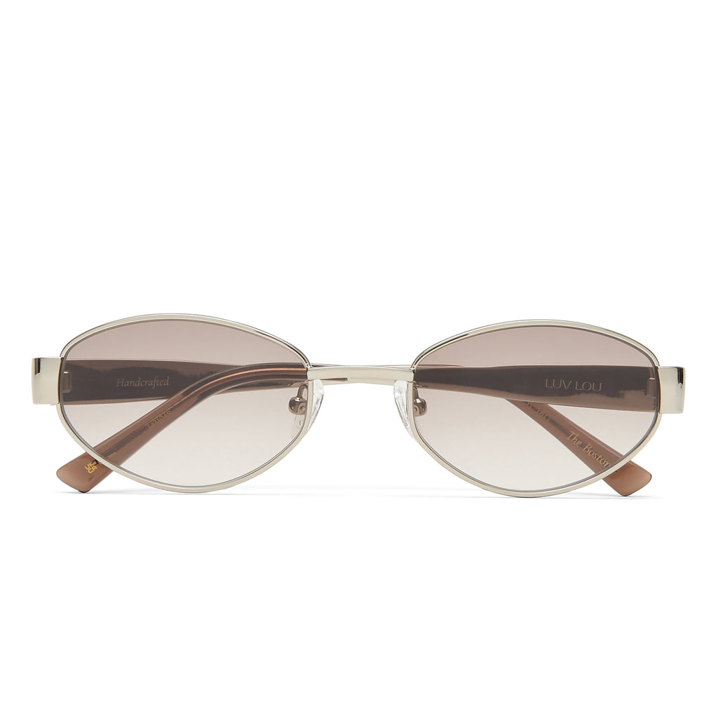 The Boston Sunglasses in Crystal Silver by Luv Lou is an ode to the 90s, which evokes a vintage aesthetic. This oval frame features a statement silver metal arm, with a signature brand stamp detail. This premium wireframe comes with a brown gradient lens adding to its high-end quality.