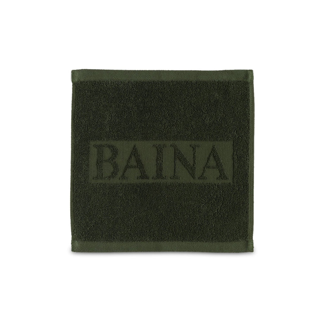 Agnes Face Cloth in Moss by luxury towelling brand, BAINA. Luxuriously soft & features an embossed BAINA logo detail, this piece makes for the perfect addition to any BAINA set. Pairs nicely with the St Bathans Bath Towel & Emerald Hand Towel.