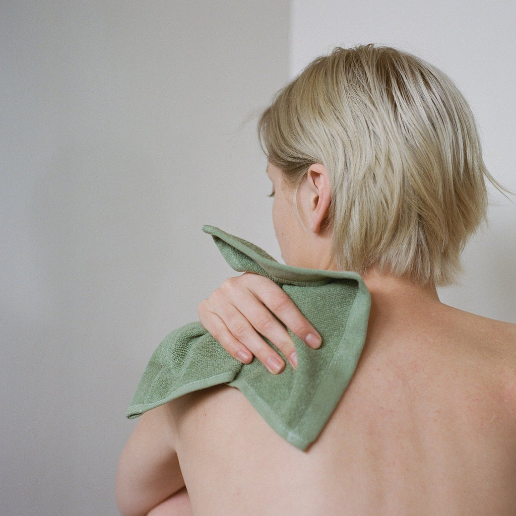 Agnes Face Cloth in Sage by luxury towelling brand, BAINA. Luxuriously soft & features an embossed BAINA logo detail, this piece makes for the perfect addition to any BAINA set. Pairs nicely with the Bethell Bath Towel.