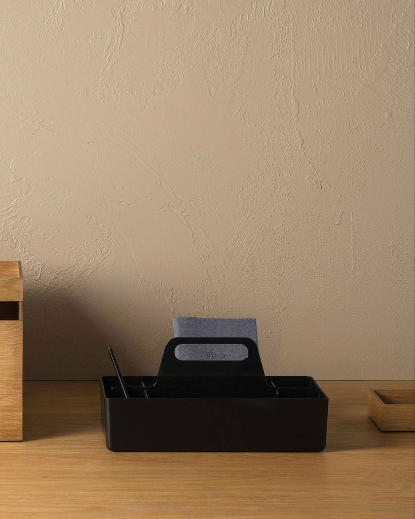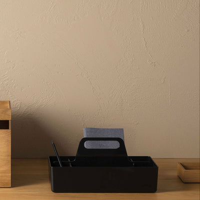 The Vitra Toolbox in Black is a practical organisational container that can be used to store all the essential tools, at work or at home. Designed by Arik Levy, Vitra Toolbox is a grab-and-go plastic storage caddy that can be stowed in a cabinet or on a shelf or trolley, keeping everything you need easily accessible. Perfect for desk tidying in your office space and mobile workspaces.