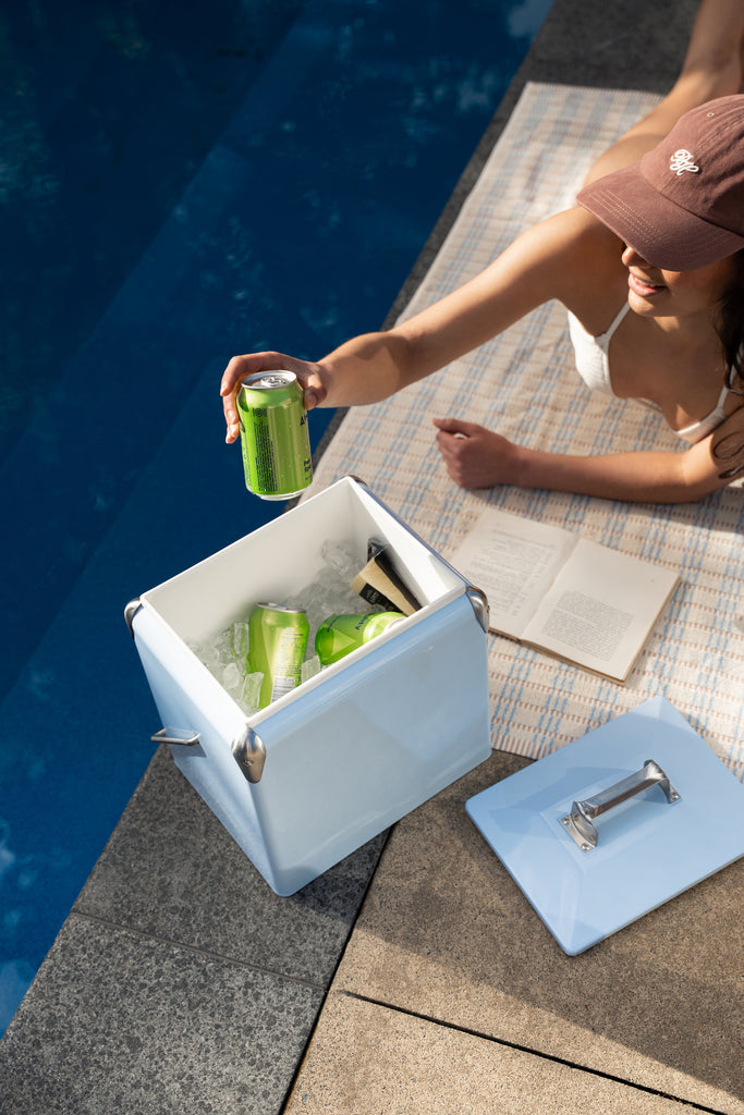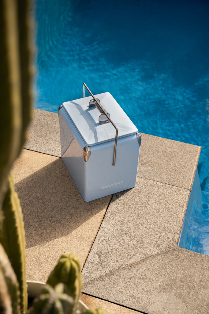 Mini Chilly Bin in Sky Blue by NZ lifestyle brand, Napoleon Goods. Napoleon has revisited the classic chilly bin with a smaller, more lightweight design to accompany your beach, boat and camping adventures.