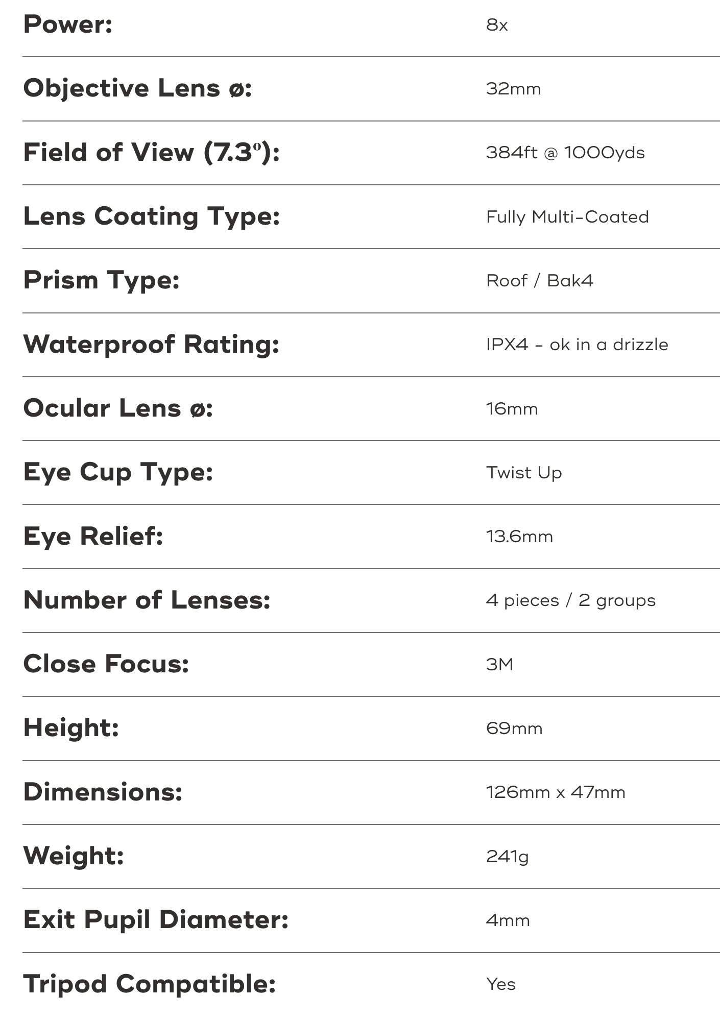 - 8x Optical zoom - the equivalent of a 400mm camera lens for your eyeballs