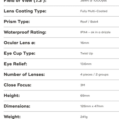 With twist-up eyecups with an adjustable eye relief of 7-13mm, Nocs work for glasses wearers and raw eyes alike. With an interpupillary distance of 56-74mm and +/-3º of diopter adjustability, Nocs fit all faces and eyes, glasses on or off.