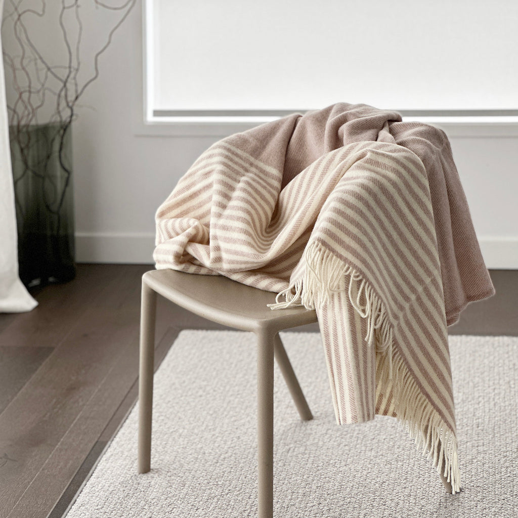 We love this fresh double-border stripe design. The Catlins throw by Weave Home is 100% wool and will keep you toasty inside or out. Featuring a relaxed, contemporary design, the cream & rose colourway is soft and muted.