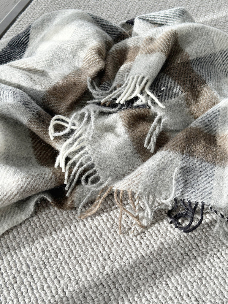 Gotland Wool is fantastically thick and silky to the touch, airy, glossy and smooth, paired with lambswool, this is a beautifully snuggly blanket. Gotland wool comes from a Swedish breed of sheep that has been herded since the Viking Age.