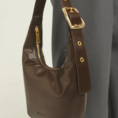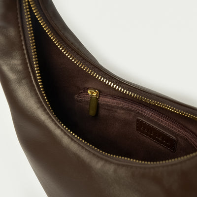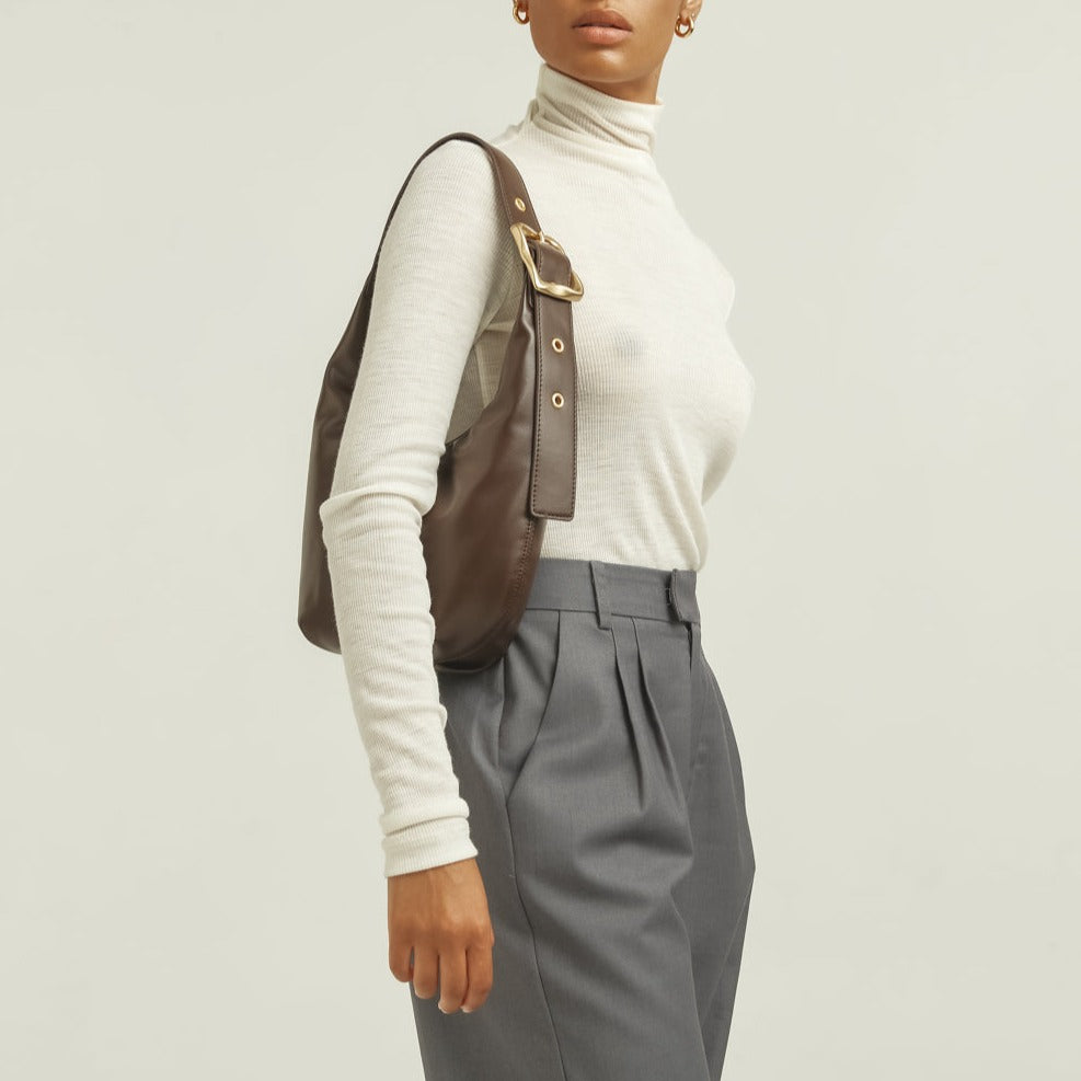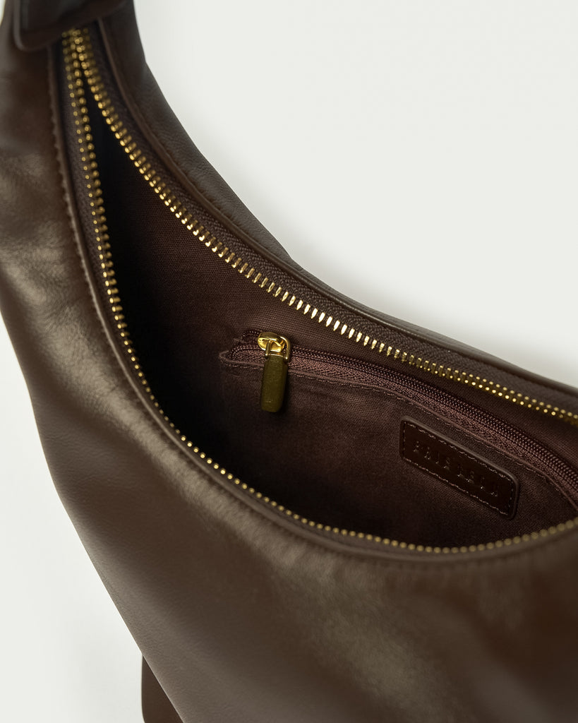 This Everyday Croissant Bag in Chocolate by Brie Leon is our new go-to, an uncomplicated and effortless bag perfect for your day-to-day life. An adjustable shoulder strap sits comfortably against the body.