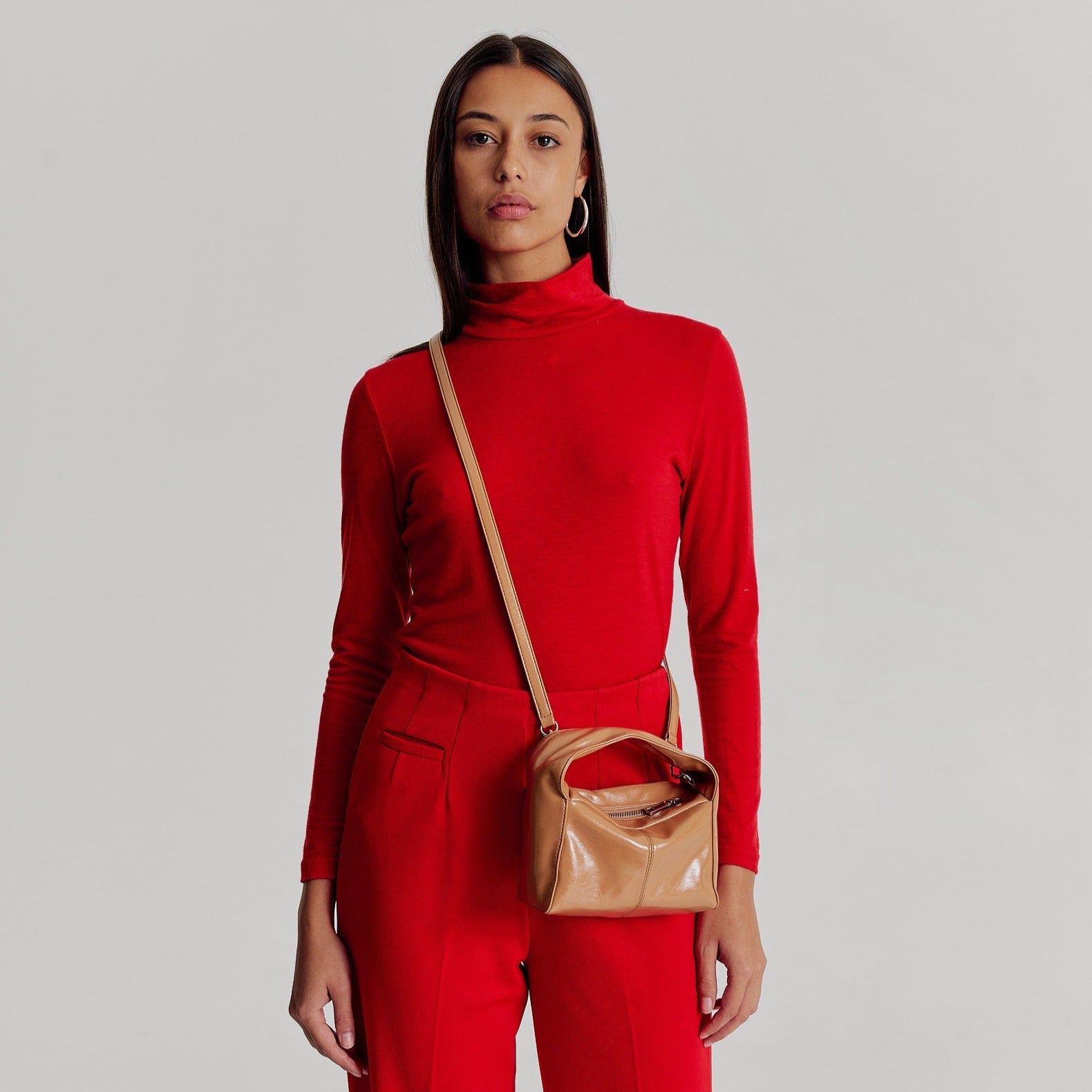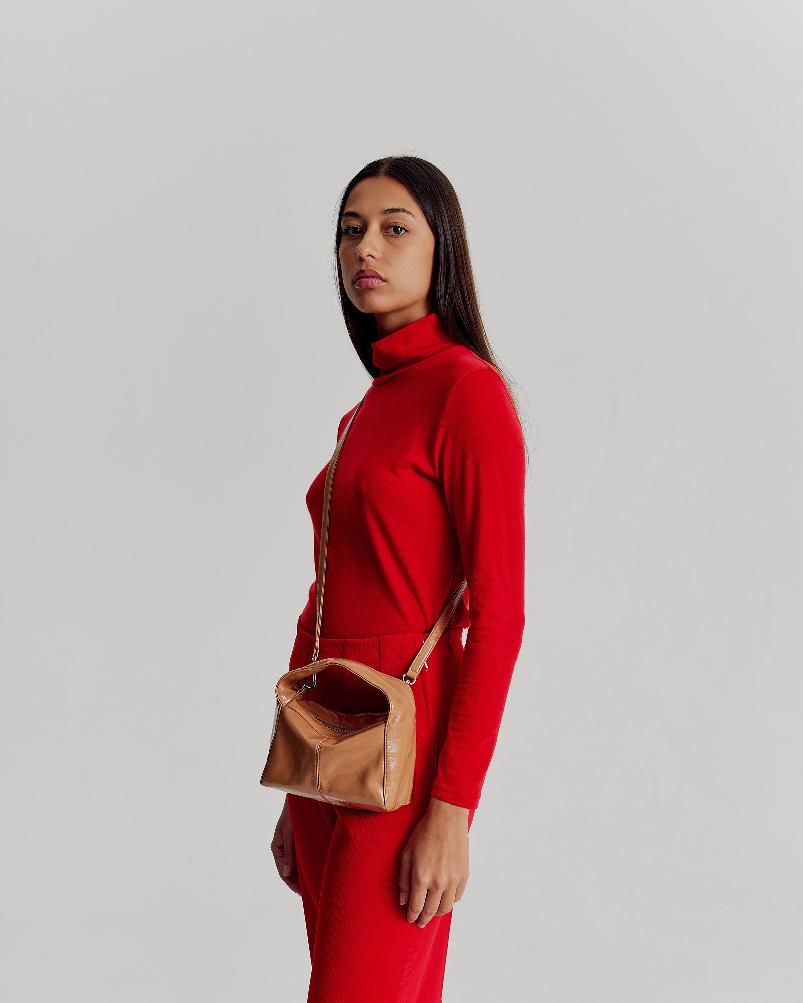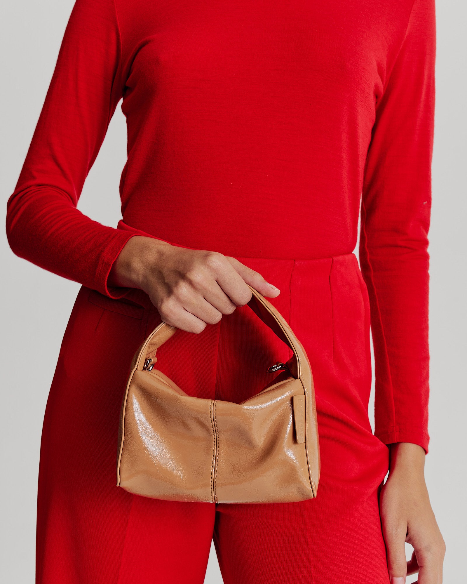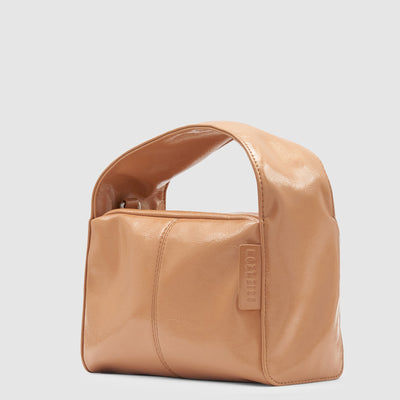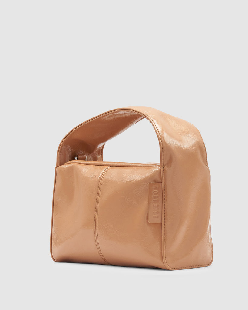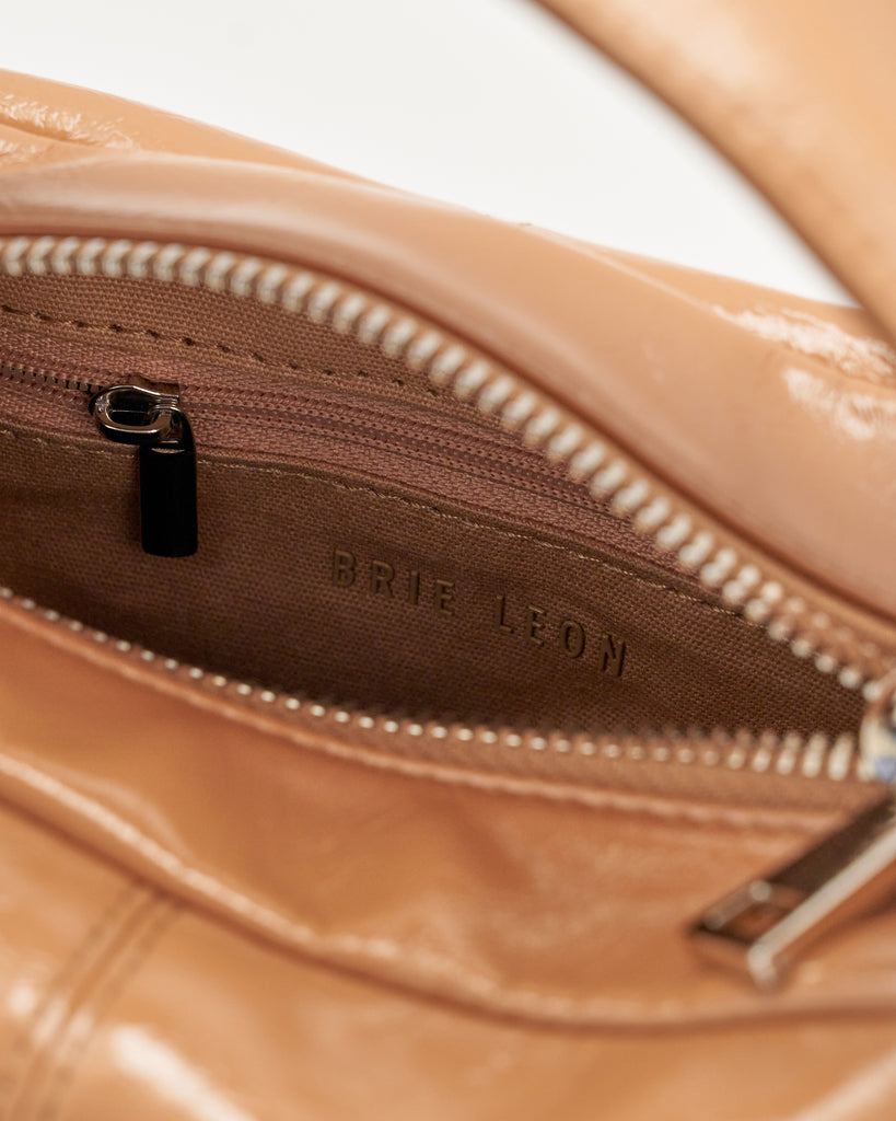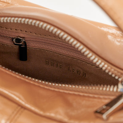 A contemporary essential, the Luca Mini Bag in Milk Tea, by Brie Leon features a sleek yet organic structure. This boxlike look is unassuming yet unforgettable, making it the ideal event bag. The bag includes a detachable crossbody strap, two internal pockets, and a flat, self-standing base. The soft patent look has a high shine glossy crinkle texture adding to the elevated look.