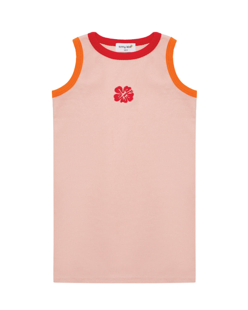 The Flamingo Ribbed Singlet Dress by Sonny Label is the perfect easy-wear dress for summer. Featuring an embroidered hibiscus motif on the front and contrasting binding colours - this dress hits the mark!
