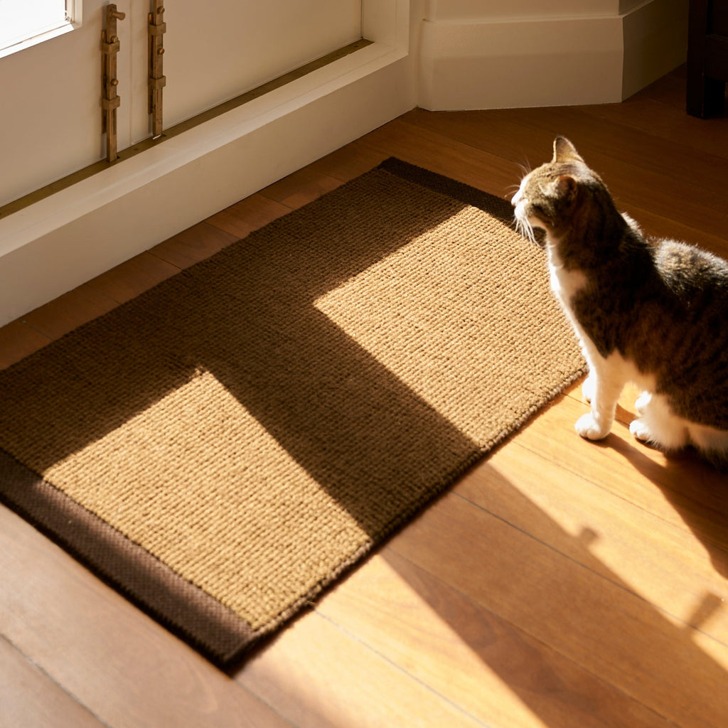 Woven with New Zealand wool in a distinctive popcorn-style weave and reinforced with a sturdy cotton backing. Elegantly presented in a calico drawstring bag, allowing for easy transportation and thoughtful gifting. Handcrafted in a certified GoodWeave factory, the mat upholds the highest standards of ethical production.