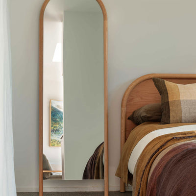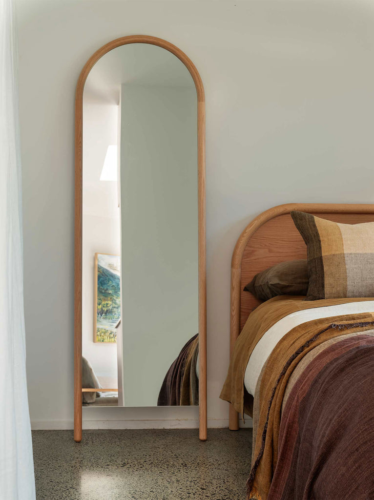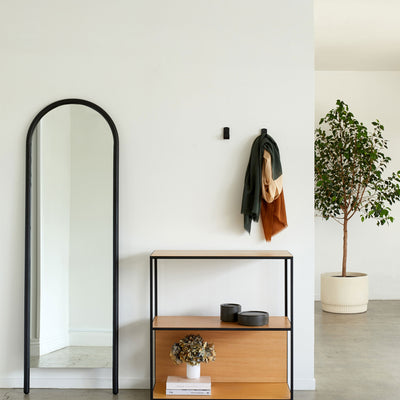 The Arc Full Length Mirror by New Zealand homewares & lifestyle design brand, Città is equal parts practical and beautiful. The surface creates the illusion of space and adds light to a setting. It doubles as a statement piece of furniture with its elegant, modern design. It features a full 'arc' at the top, softly rounded edges, and a square bottom.