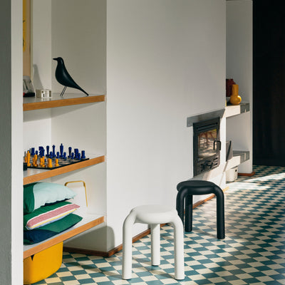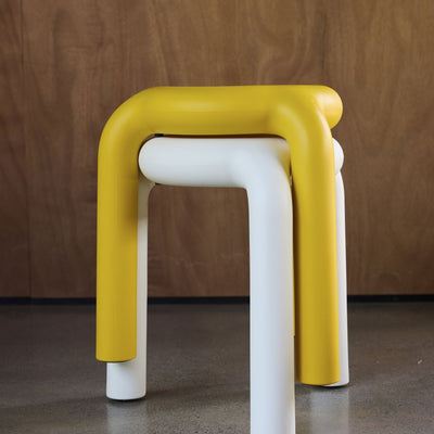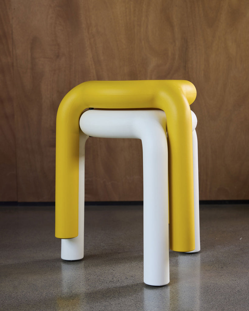 The Piccolo Stool in Warm White combines exaggerated proportions with minimalist design. Despite its bold presence, the stool remains lightweight and practical. Its hollowed-out structure gives a playful, airy feel while allowing for convenient stacking and moving around. The Piccolo is suitable for both indoor & outdoor use, making it ideal for various settings.