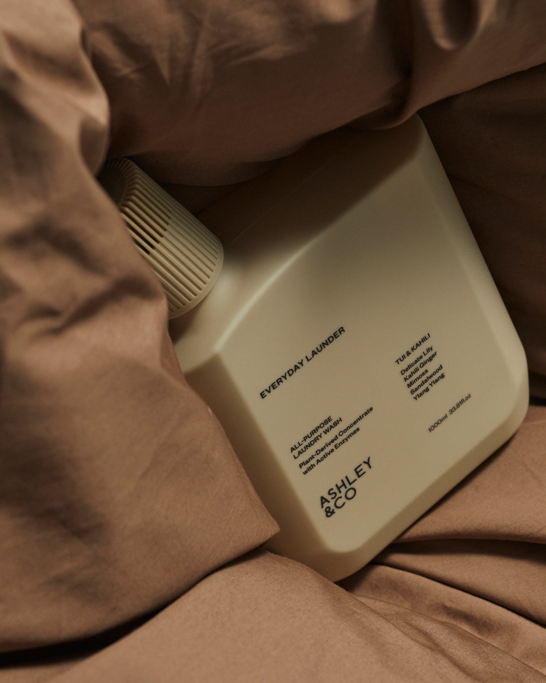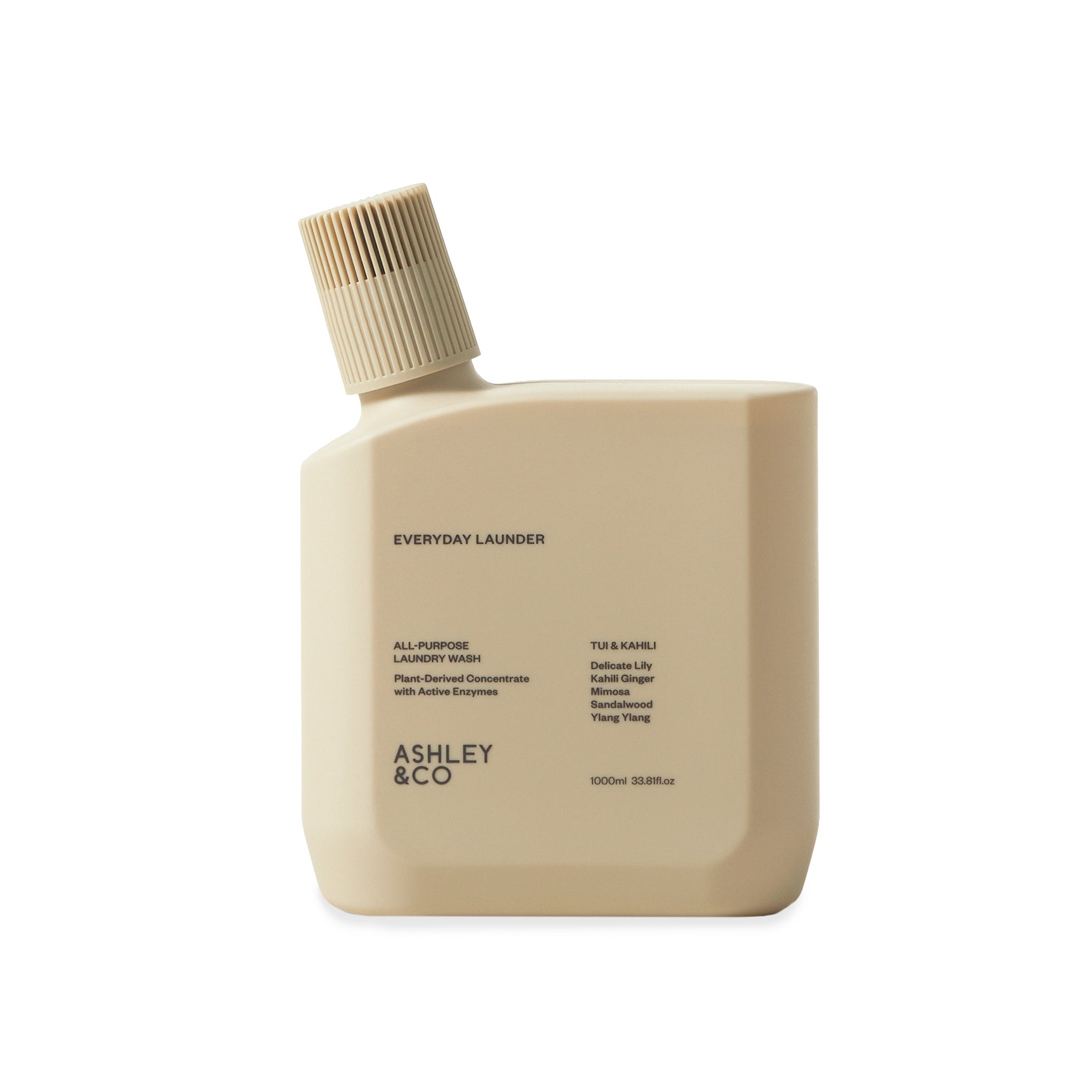 Everyday Launder by Ashley & Co. is about to be your new favourite laundry pal. Everyday Launder is suitable for everyday use, for all temperatures, washers, fabrics & delicates including silks. A plant-derived concentrate, it's loaded with active enzymes to remove stains while reviving fabric with the fresh, iconic scent of Tui & Kahili. All-purpose, this concentrate cleans, whitens, brightens, preserves colour, treats stains and leaves fabrics soft.