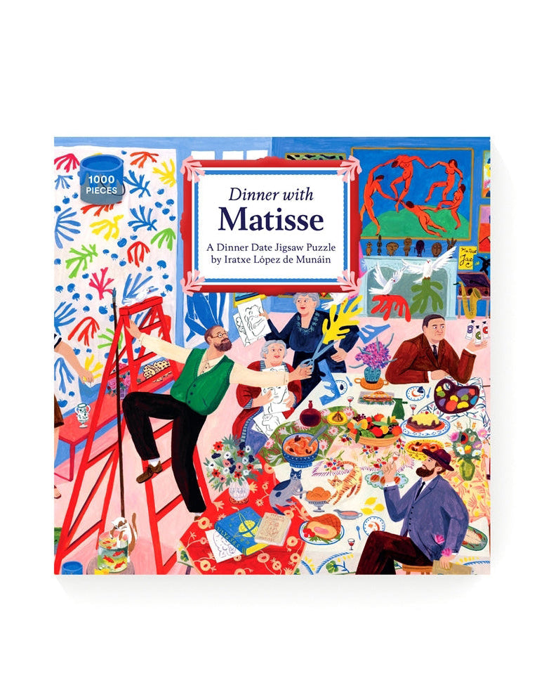 If you could have dinner with any artist, who would it be? Bonjour and welcome to Henri Matisse's studio at the Hôtel Régina. An intimate dinner party or collage of chaos? Grab your scissors and join Pablo Picasso, André Derain and the Cone sisters, along with three very special brioche-eating cats, for a fauvist feast in this 1000-piece Dinner with Matisse Puzzle. Piece together the artists, artworks and surroundings that bring Matisse's colourful world to life.