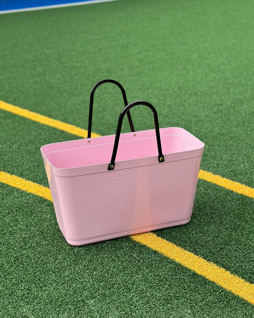 Large Eco-Friendly reusable bag in baby Pink by Scandinavian-based brand, Hinza. All Hinza bags are long-lasting, durable and recyclable, thus saving additional natural resources and minimising any environmental impact. This Green Plastic version of the Hinza bag is even more eco-friendly as the plastic is made from sugar cane, a renewable raw material.