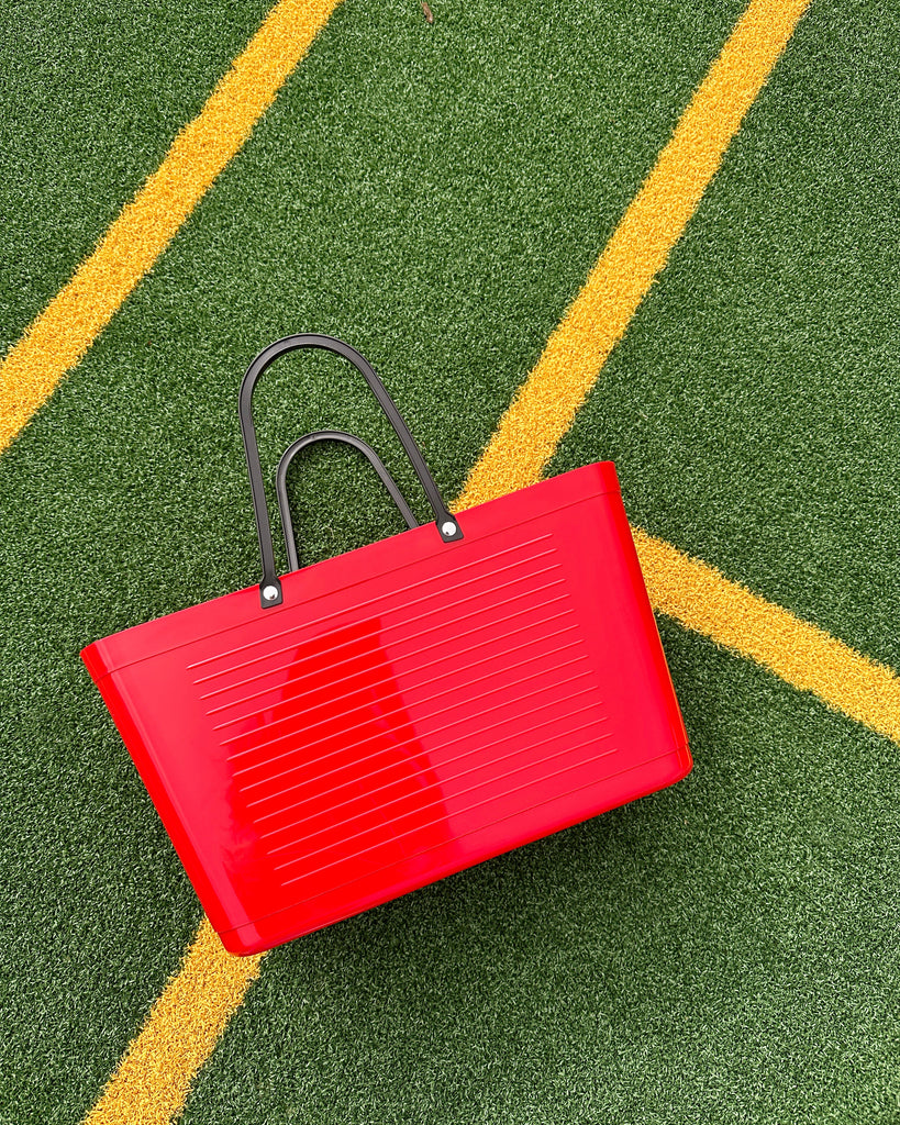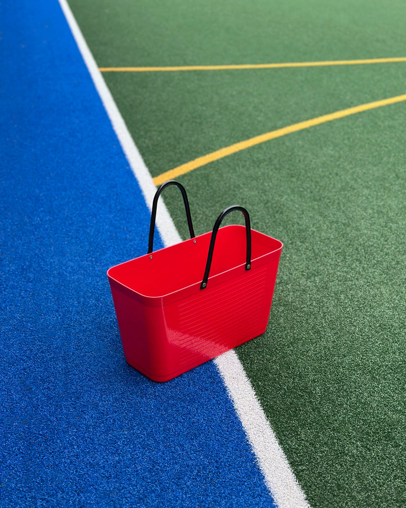 The Large reusable plastic bucket bag in Red by Scandinavian-based brand, Hinza. All Hinza bags are long-lasting, durable and recyclable, thus saving additional natural resources and minimising any environmental impact. The classical stylish shape makes it fit anywhere, and the plastic material allows it to withstand almost anything it is exposed to. The Hinza bag is an obvious choice for picnics and outings like pool parties and shopping trips and is perfect for hobby and gardening jobs as it is sturdy and easy to clean.