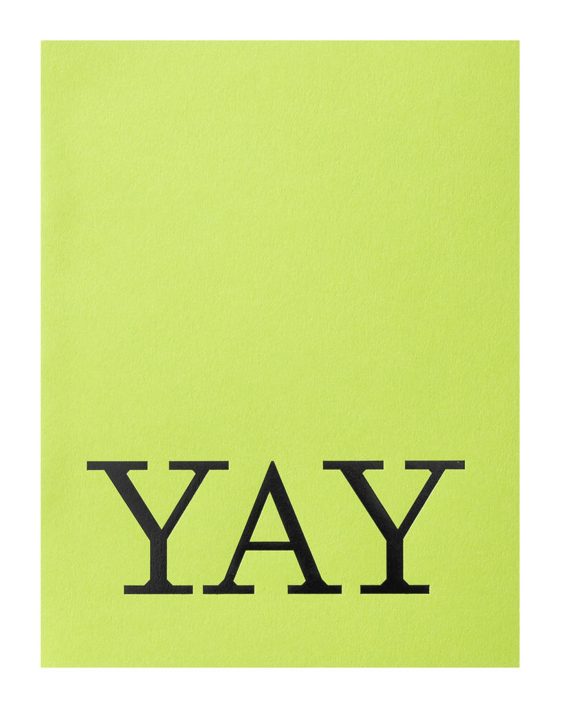 You did the thing, congrats! Three little letters that say so much. This card by Short Talk is mindfully made in Melbourne from lush, textured BRAT lime green paper stock and has been manually letterpressed by hand.