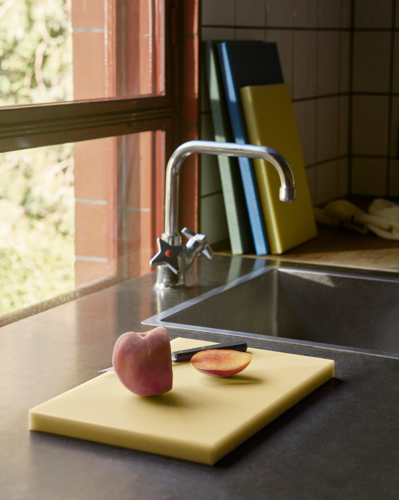 The Medium Slice Chopping Board’s simple and colourful design by HAY adds both fun and functionality to an everyday essential. In addition to brightening up the kitchen, the multiple colours are useful when chopping different kinds of foods. Made of polyethylene, which makes it hygienic and easy to clean.