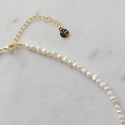 Oh my cute little thing! A delicate freshwater pearl necklace by New Zealand jewellery & accessories fave, Sophie Store. Wear layered otherwise simply sweet on its own. Secured with a clasp & adjustable length.
