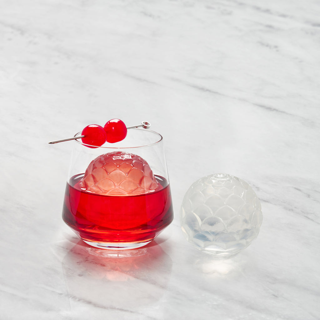 Take your cocktail game to the next level with an ice cube tray that creates oversized ice spheres with a twist, inspired by the Art Nouveau movement.