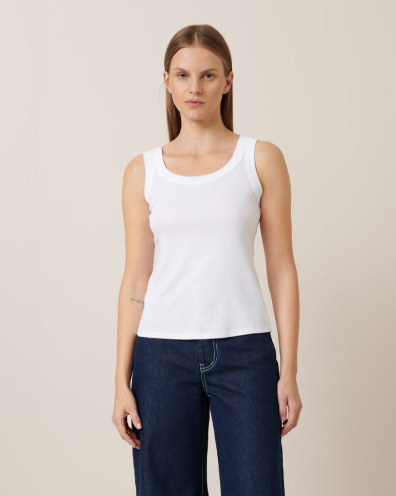 Elevate your everyday style with the ribbed Everyday Singlet in White by Kowtow. Designed for daily wear, this singlet has a flattering close fit and features a wide scoop neckline at the front and back. Finished with ribbing around the neck and armholes, it's made from a soft organic cotton jersey for complete comfort.
