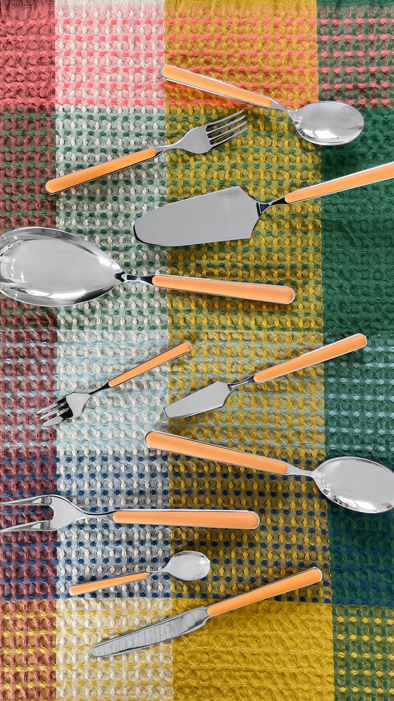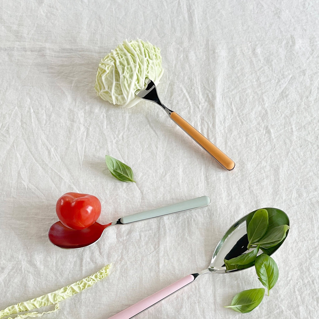Create a fun dining experience with these stunning Italian-made Fantasia flatware pieces by famed design house Mepra. Crafted in thick stainless steel with a matte resin handle, enriched with glass fibres to maximise the colour that won't dull over time, perfect for switching it up on the dinner table. Entertain in style with the Mepra Fantasia range.