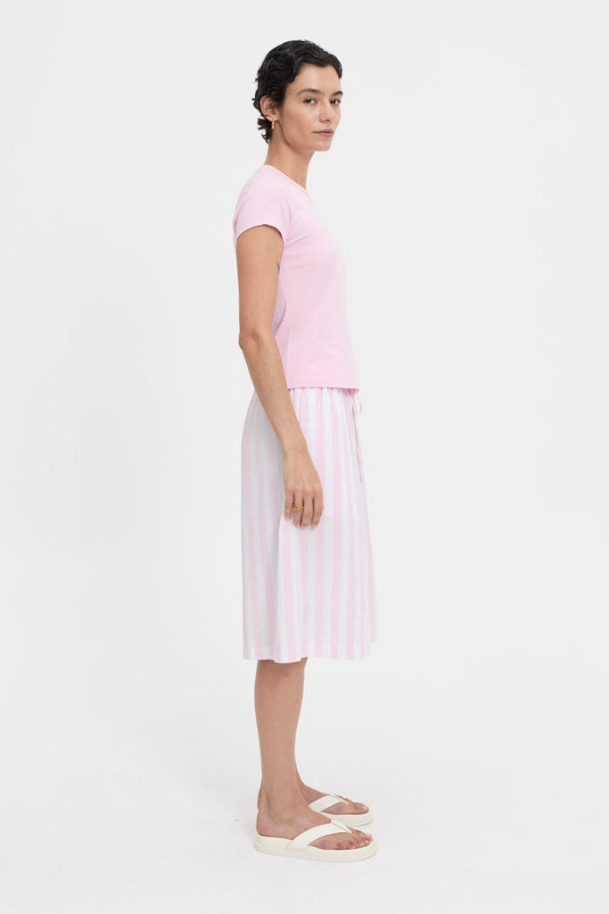 The Laina Baby Tee in Pink by BLANCA brings a soft, pastel touch to your everyday wardrobe. Crafted from breathable cotton with just the right amount of stretch, this ultra-soft tee contours to your shape, offering a flattering fit that feels as good as it looks. The cropped length and classic crew neckline make it an effortlessly versatile piece, perfect for layering or wearing on its own.