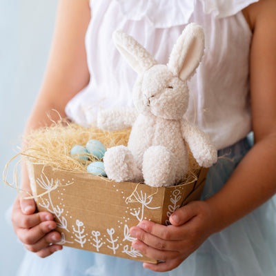 This mini, soft Bonnie bunny rattle has been designed to allow you to pair them with some of our favourite soft toy friends. The optimal size for teensy baby hands, the mini rattle will be sure to entertain your toddler too!
