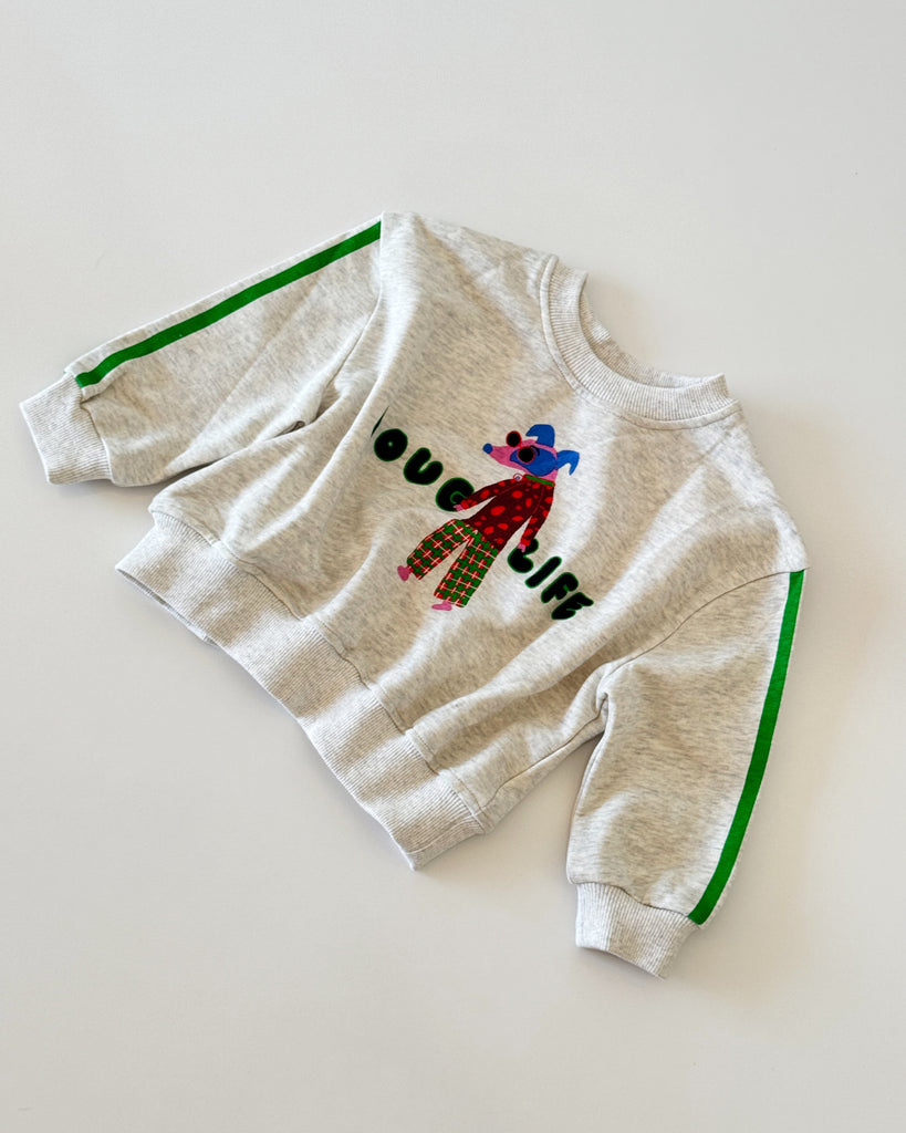 The French Terry Pullover by Aussie kid's brand By Billie features a screen-printed 'Doug Life' print, and two stripes down each arm resulting in a fun sweater perfect for every winter wardrobe.
