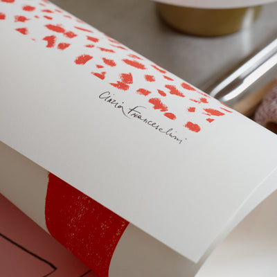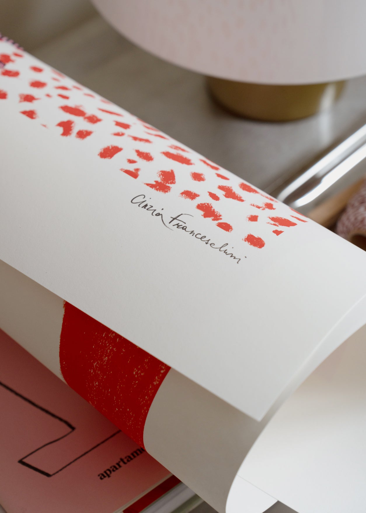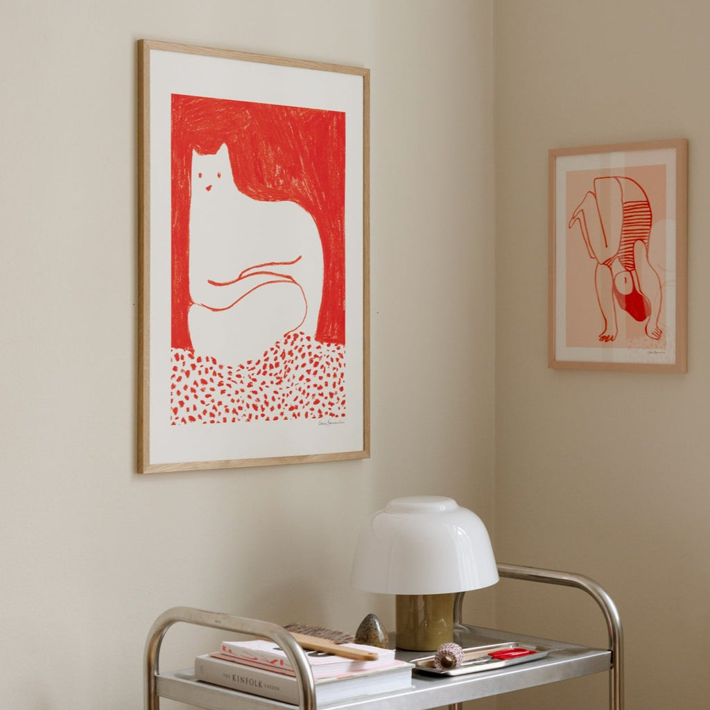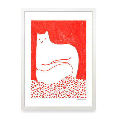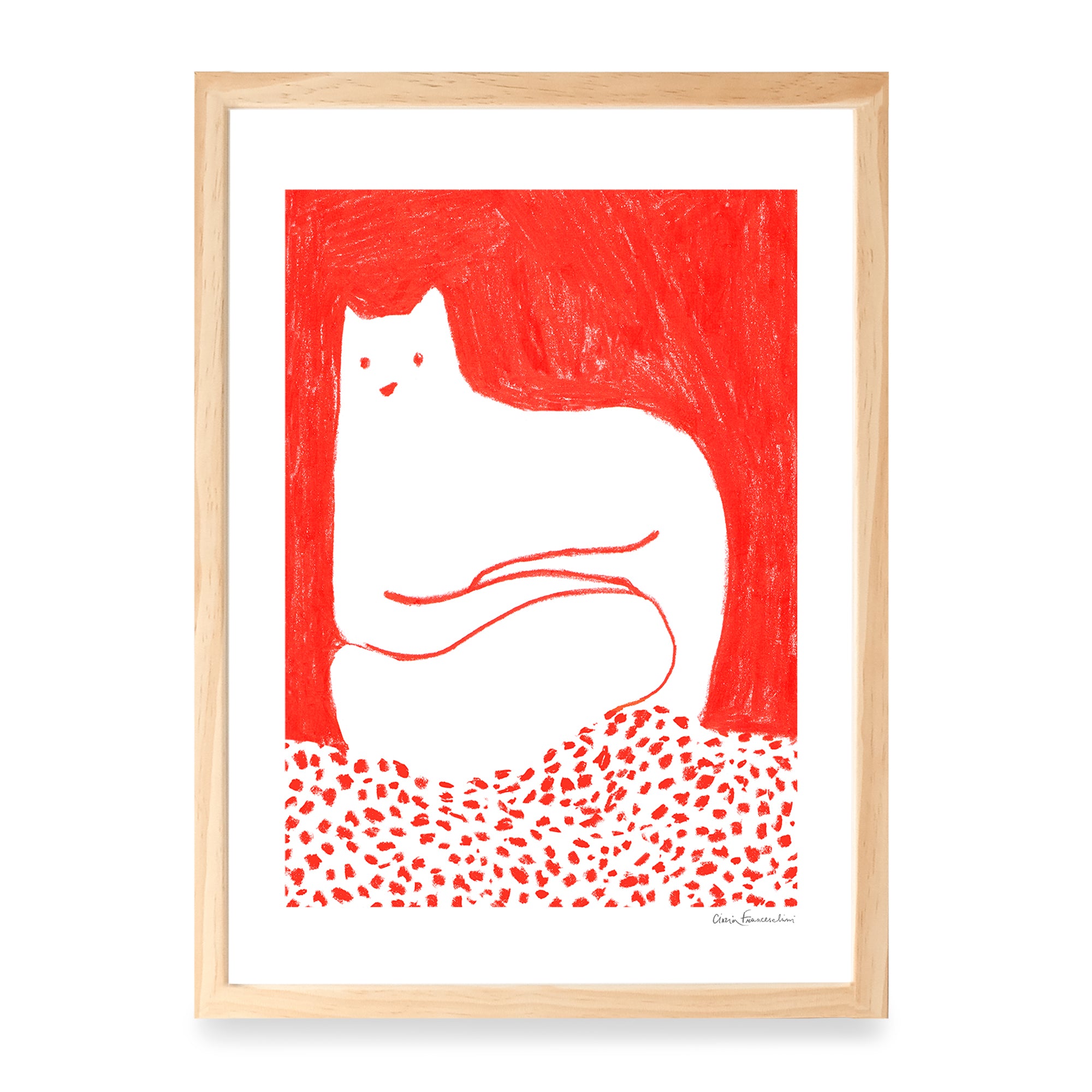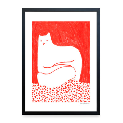 Cat in Red fine art giclée print by artist Cinzia Franceschini for The Poster Club, Denmark.