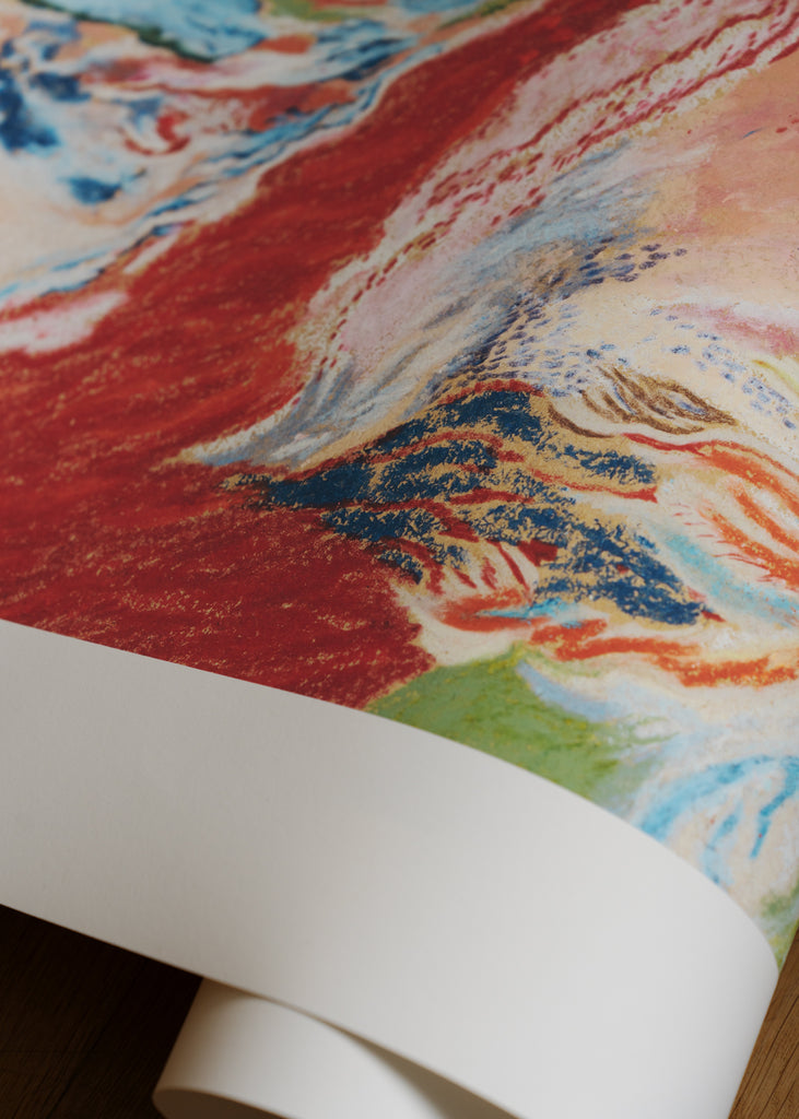 Printed on 265g natural high-quality art paper with a matte, uncoated finish and lightly textured surface, that ensures a rich and vibrant display of colours.