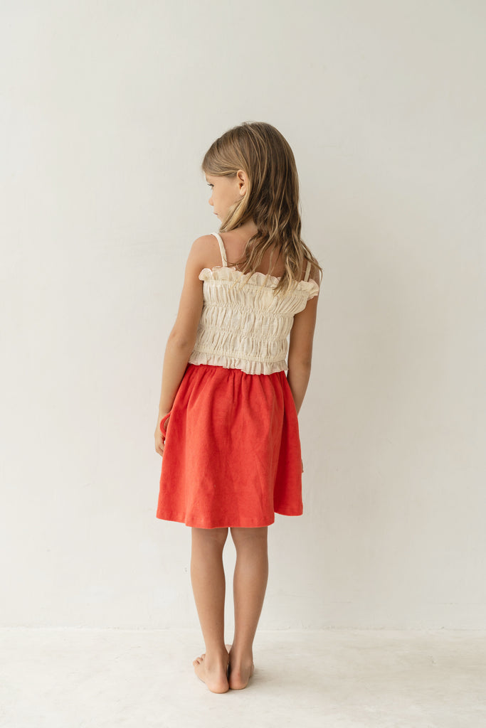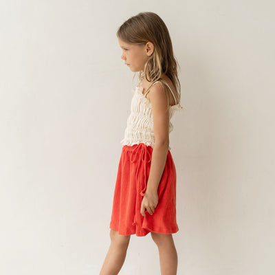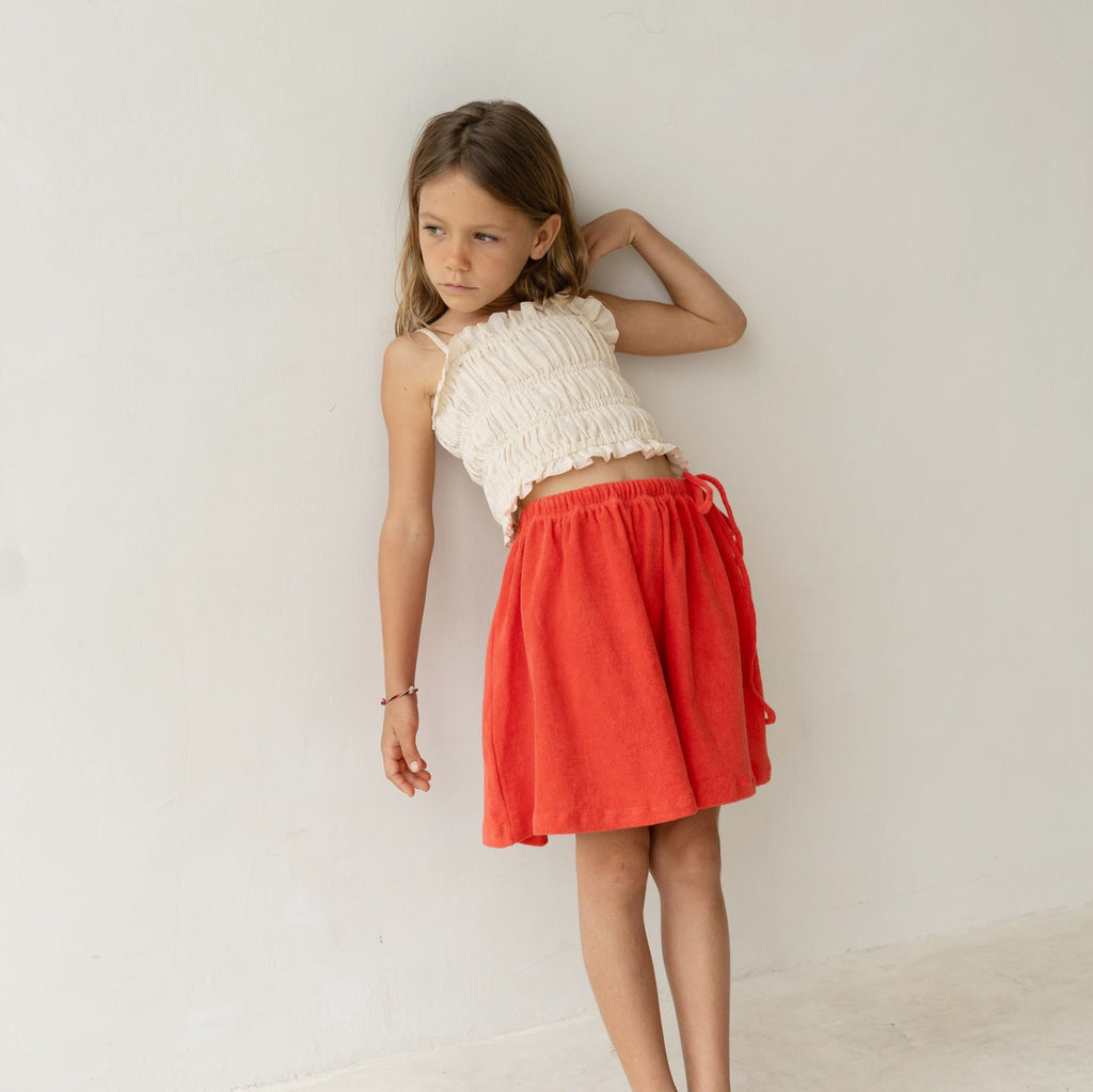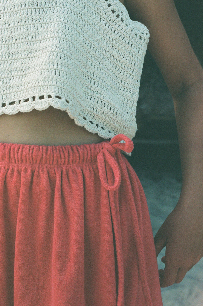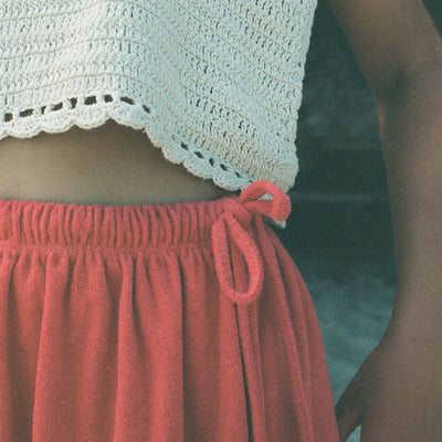 Brimming with femininity, the Lenni Skirt by Illoura is made sweeter by the summer-infused Watermelon hue. Crafted from textured terry towelling, this mini offers an elasticated waistband with a functional drawcord - we love this paired with the Shirred Crop this season.