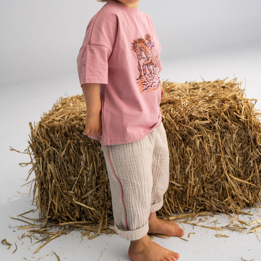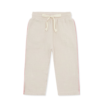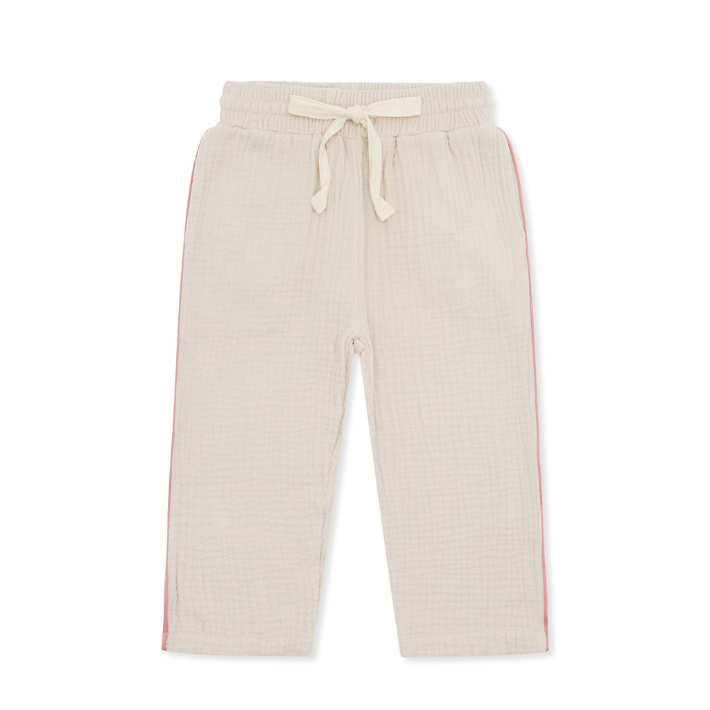 The Muslin Pants by Sonny Label feature salmon piping down the side of the legs. With an elasticated waistband, drawstring tie and a lightweight fabrication, these shorts are the perfect summertime pair of pants.