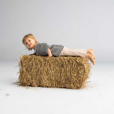Size: Due to the nature of muslin fabric, these pants will shrink ever so slightly upon first wash. Muslin doesn't contain any stretch so we recommend sizing up for a relaxed look and a rolled up cuff.