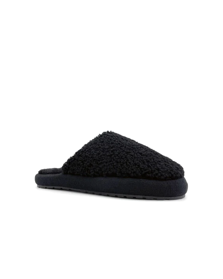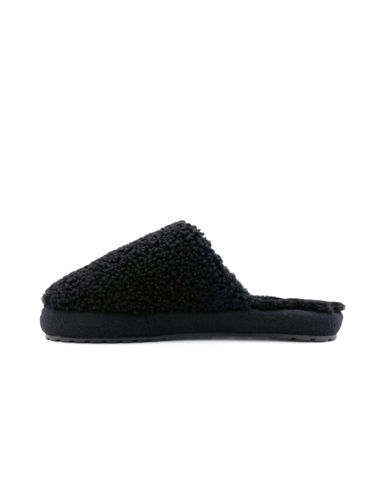 The Starley Slippers in Black by EMU are a cosy, closed-toe, open back design that combines style and comfort. Featuring a soft teddy-textured upper adding a touch of warmth and a wool blend wrapped foam sole providing superior cushioning & support with every step. Perfect for relaxing at home, the Starley's are perfect for relaxing at home.