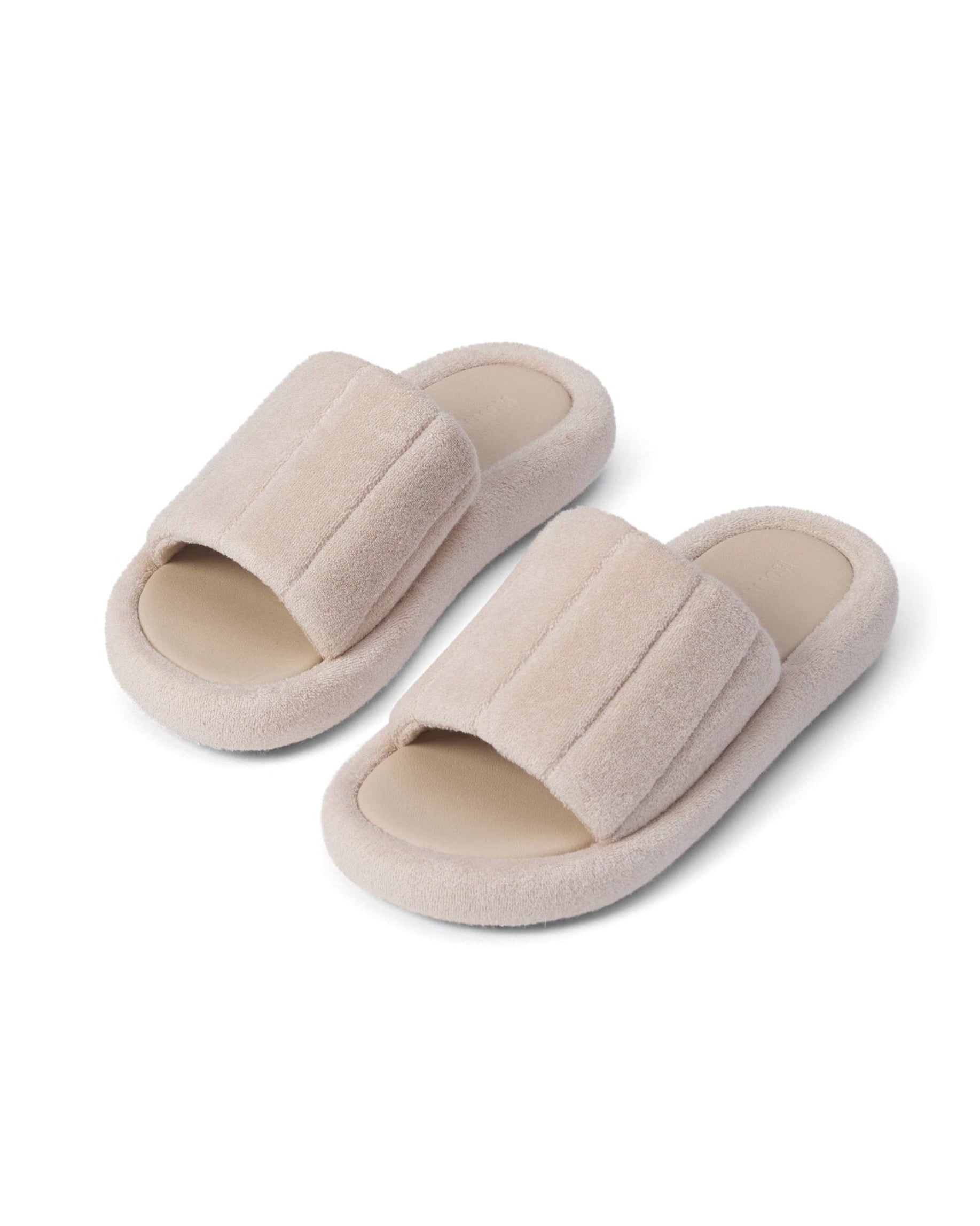 Introducing Bobbi in Coconut, the new summer slide by Hommey that effortlessly transitions from day to night with comfort and style. Crafted from high-quality cotton terry and engineered with premium footbed construction, these slides feature a platform base, ensuring they become your go-to summer favourite. Whether you're pairing them with activewear or evening wear, Bobbi is perfect for any occasion, in and out of the home.
