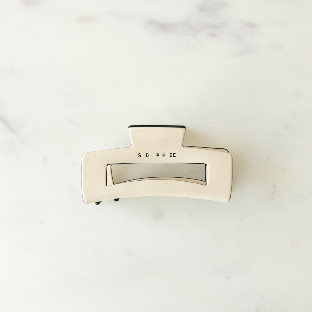 The Claw Clip in Ivory by Kiwi brand, Sophie. An effortless way to wear your hair back.