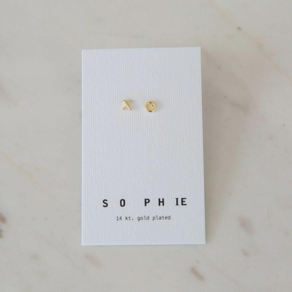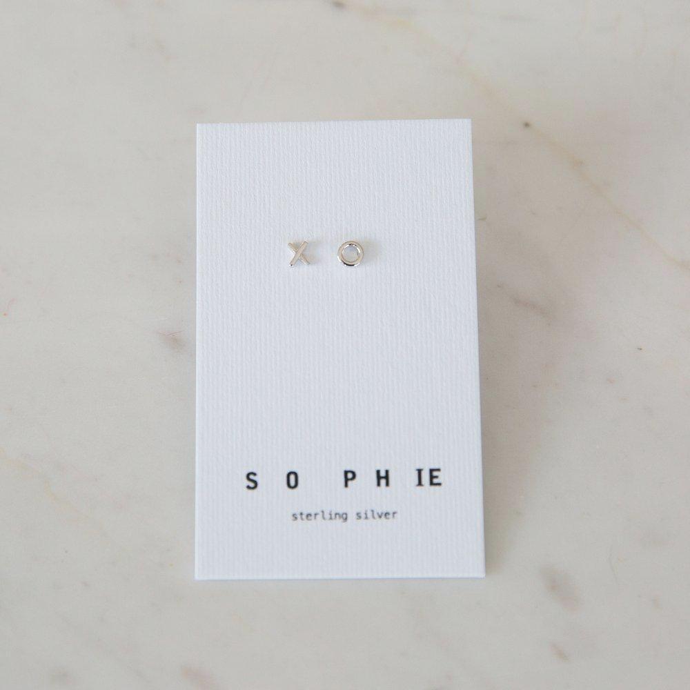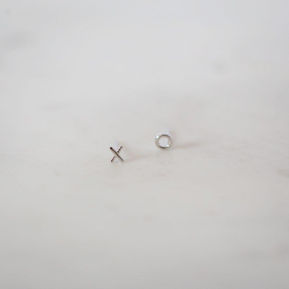 A pair of simple 'x' and 'o' studs by Kiwi brand, Sophie. A sweet style that's super cute on its own, or with multiple piercings.