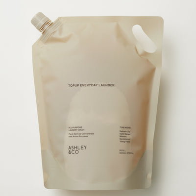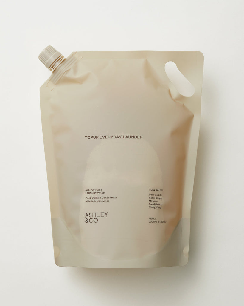Everyday Launder by Ashley & Co. is about to be your new favourite laundry pal. Everyday Launder is suitable for everyday use, for all temperatures, washers, fabrics & delicates including silks. A plant-derived concentrate, it's loaded with active enzymes to remove stains while reviving fabric with the fresh, iconic scent of Tui & Kahili. All-purpose, this concentrate cleans, whitens, brightens, preserves colour, treats stains and leaves fabrics soft.