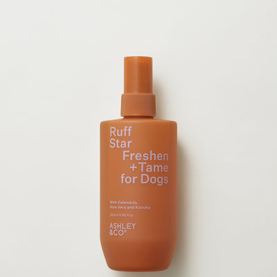 Ruff Star Freshen & Tame Dog Spray by Ashley & Co is the go-to, quick and safe way to freshen pup’s coat – as well as their favourite places! Perfect for between Awoof Wash cleans, Ruff Star tames and adds shine to all coat types with its soothing extracts and oils.