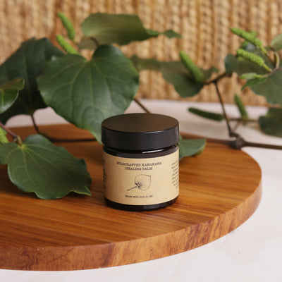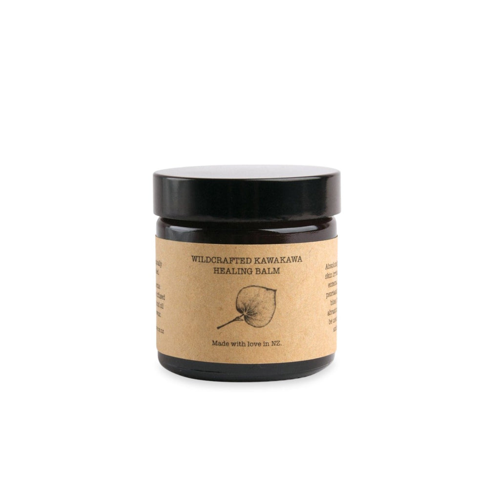 Wildcrafted Kawakawa Healing Balm by NZ brand, Wild Love is a healing skin balm that is absolutely amazing for skin irritations such as eczema, dermatitis, psoriasis, nappy rash, bites, burns, and abrasions and because of its anti-inflammatory properties may also be used as a massage balm for sprains and strains. Makes a beautiful lip balm and general skin salve also.