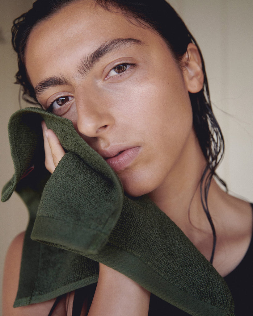 Agnes Face Cloth in Moss by luxury towelling brand, BAINA. Luxuriously soft & features an embossed BAINA logo detail, this piece makes for the perfect addition to any BAINA set. Pairs nicely with the St Bathans Bath Towel & Emerald Hand Towel.