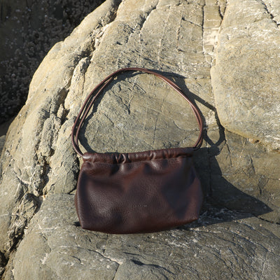 The Alma Bag in Chocolate, by Brie Leon, is a tribute to warm summer evenings. Inspired by the shape and form of clams, this bag captures the essence of carefree nights. Its name, Alma, pays homage to the Spanish word Alejma meaning "clam". The Alma Bag embodies the essence of a softly structured clutch with an adjustable, thin strap. This versatile design has a magnetic snap closure and can be worn on the shoulder, sitting long as a crossbody or handheld as a clutch.