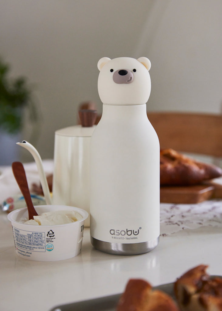 Add character to your daily hydration with the Chillington the Polar Bear Bestie Bottle by Asobu. This adorable, insulated water bottle features a removable, collectible silicone character head, making hydration fun and playful. The double-walled, vacuum-insulated build keeps your drinks cold for 24 hours or hot for 12 hours, and you can sip stress-free with the leakproof lid, making this the perfect companion for any adventure.