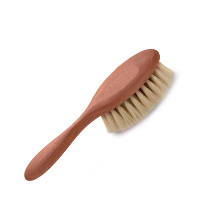 This Baby's Soft Hair Brush is handmade from oiled pear wood and the softest goat hair. Regular brushing will keep baby’s hair smooth and silky without irritating the scalp.