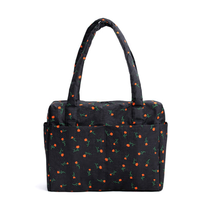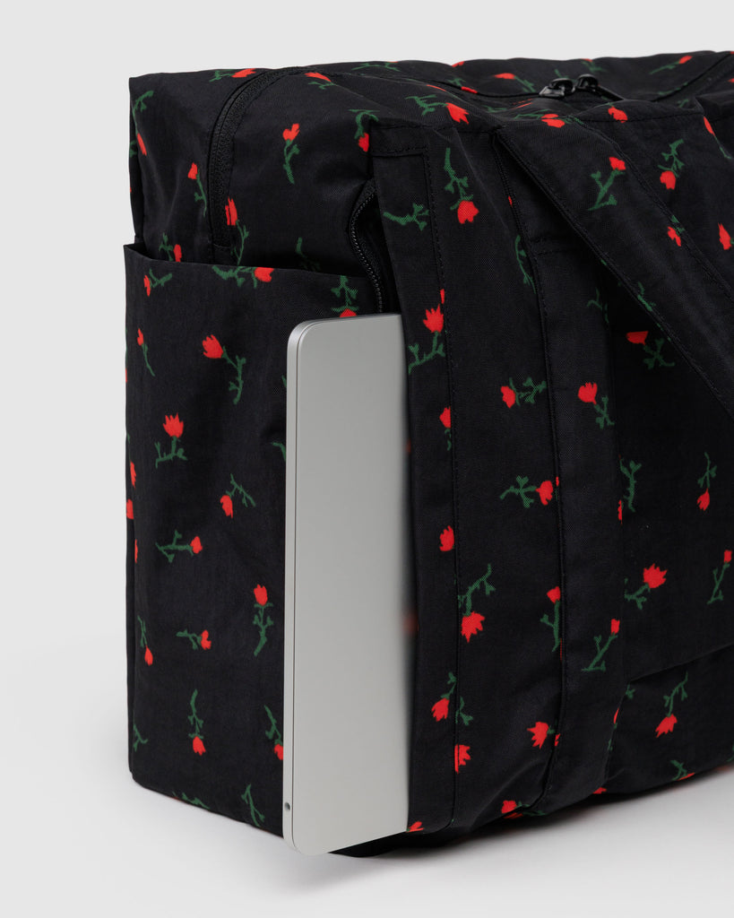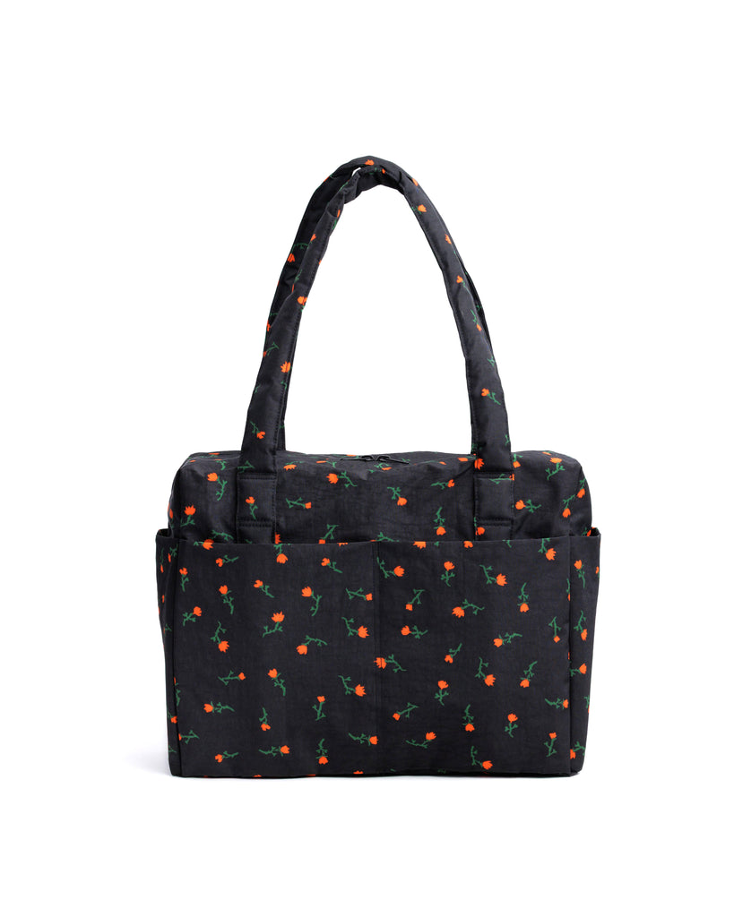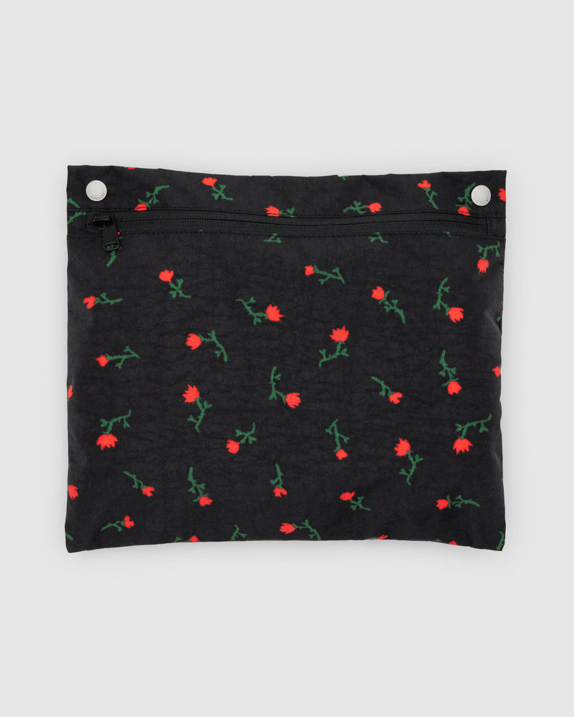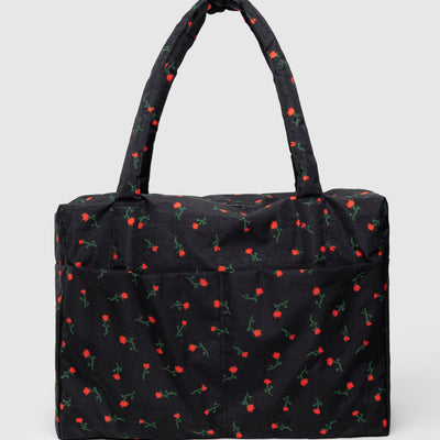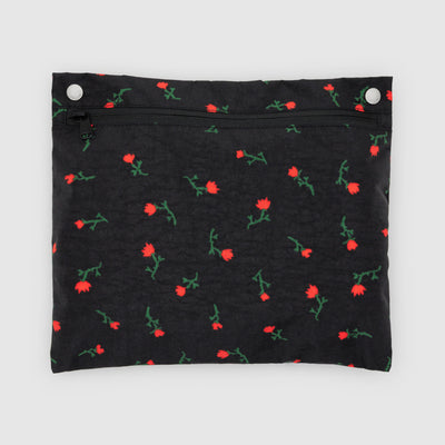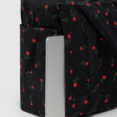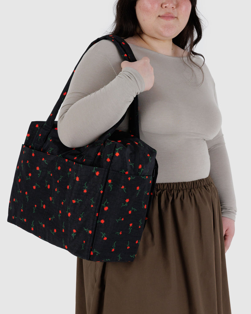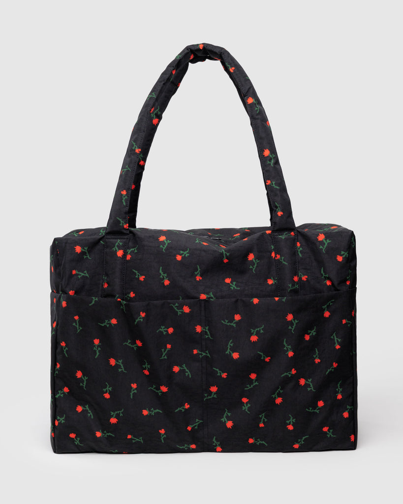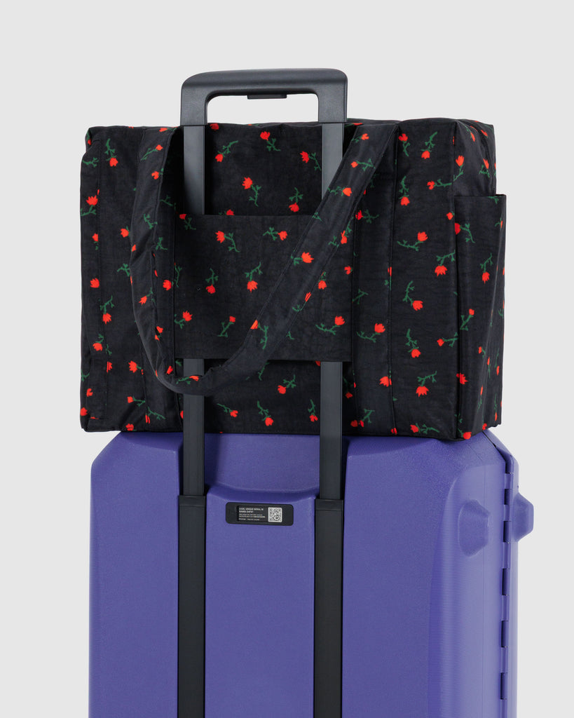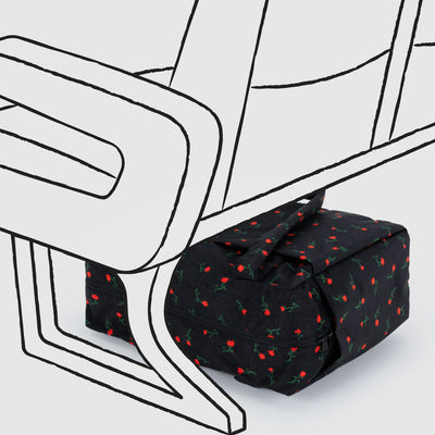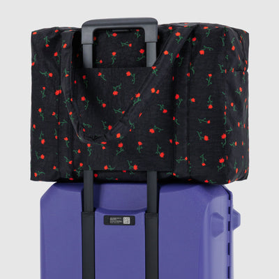 The Cloud Carry-On Bags in Painted Wildflower by BAGGU are travel bags optimised for flying. These fit everything you need for a few nights away and happily ride on your roll-aboard with the trolley sleeve. The small size fits under most aeroplane seats, while the large size fits easily into the overhead lockers.