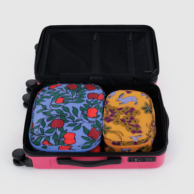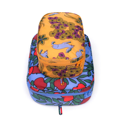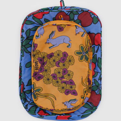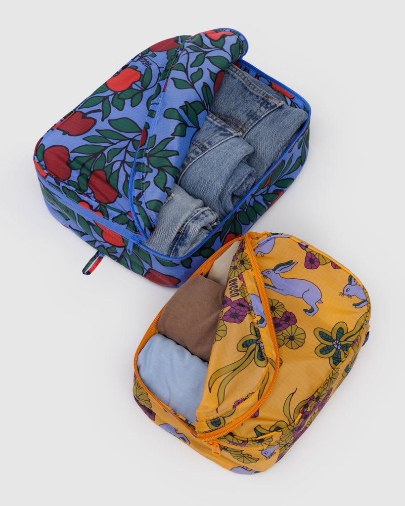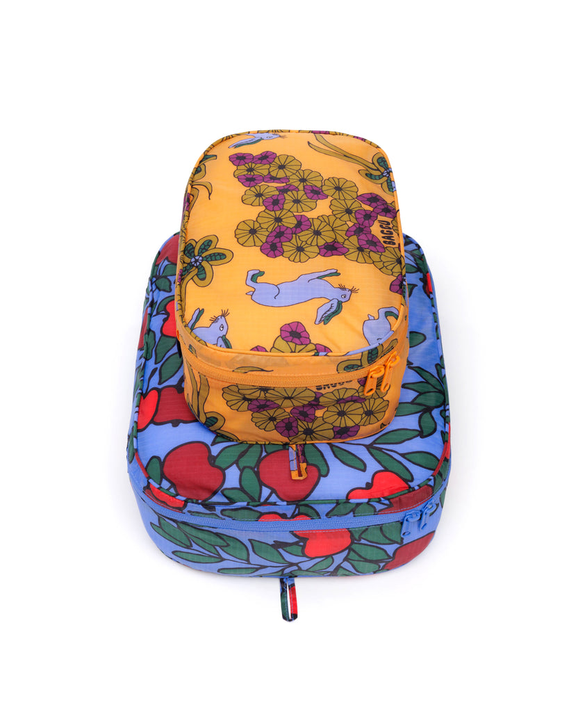 The Packing Cube Set in Night Orchard by Baggu is perfect for keeping order on your travels. A set of two sizes of packing compartments in bright colours, so you'll always have an organised home for your belongings in your suitcase or carry-on.