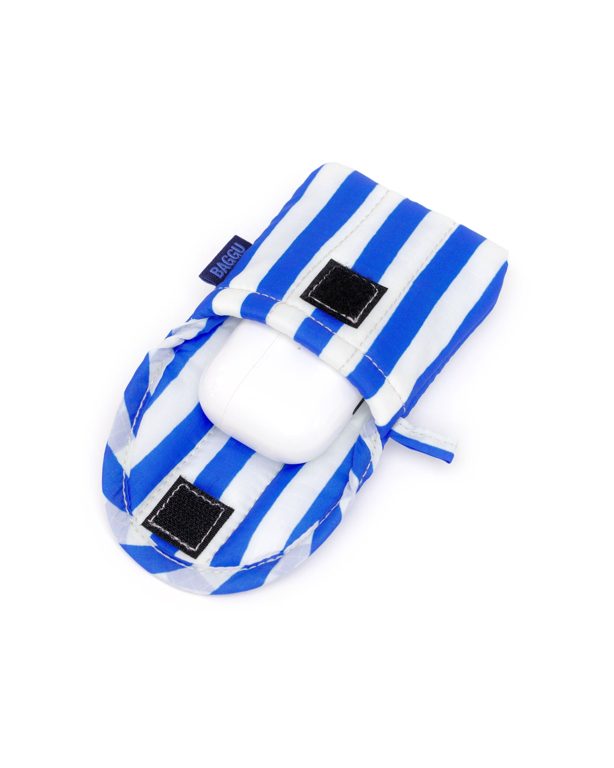 The Puffy Earbuds Case in Painted Blue Stripes by BAGGU is a quilted home for your earbuds, lightly padded to protect them from scratches and dirt. The bright colour makes it easy to find in your bag, and they feature a keychain loop too, so you never lose your earbuds again - bonus!